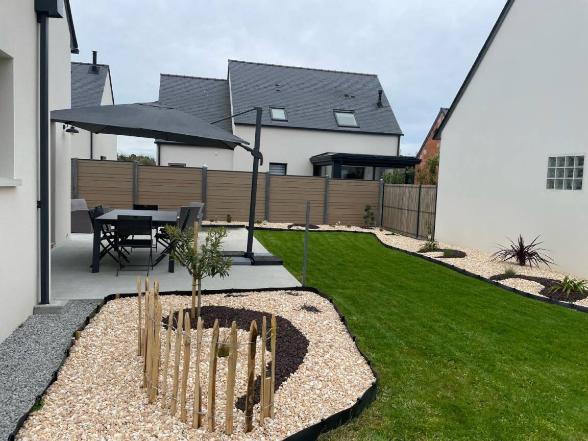 Ein offenes Wohnzimmer mit der Küche, dem Wohnzimmer und dem Wohnzimmer, mit direktem Zugang zur Terrasse und dem umzäunten Garten. Ein Schlafzimmer im Erdgeschoss für zwei Personen mit einem 160x200-Bett, einem eigenen Badezimmer. Unabhängiges WC.