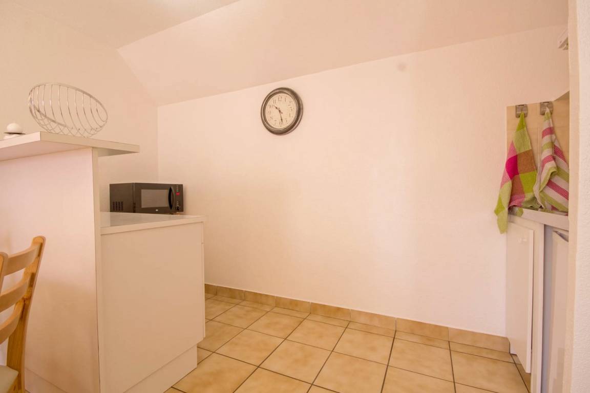 Come to the Presqu'île de Rhuys in southern Brittany for a great seaside holiday between the Gulf of Morbihan and the Atlantic, a perfect location for swimming, water sports, boating and fishing. Lots to do on land too, including walking, golf, tennis, horse riding and thalassotherapy. For evening entertainment there are numerous bars and restaurants, plus a cinema and casino at Port Crouesty. This first (top) floor flat on a quiet residential estate, is open all year round. It is well-placed in the centre of Sarzeau and has a private car park, so within easy walking distance of shops. Living room with lounge, dining and kitchen areas (combi microwave oven and grill). Bedroom : double bed. Shower room. WC. Price includes electricity, heating and local tourist tax. Table linen provided. Bed made on arrival if bed linen hire option chosen