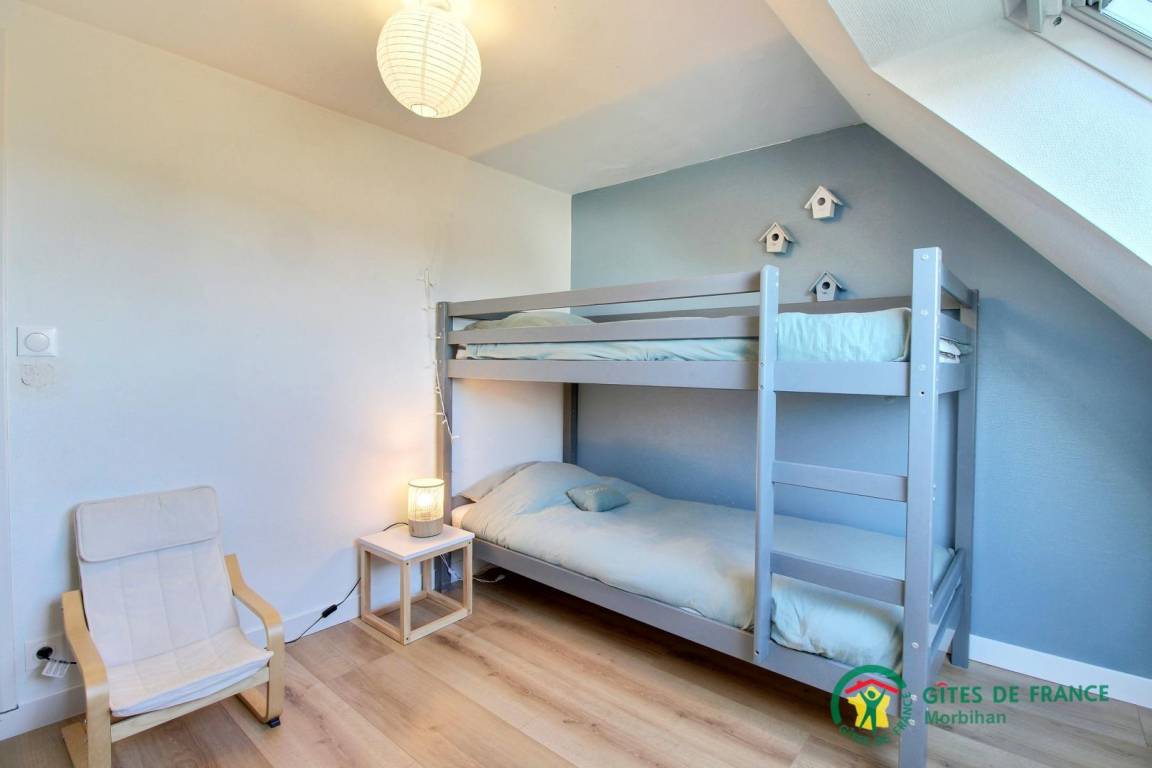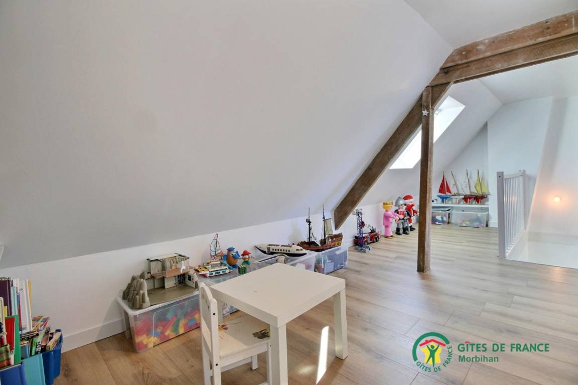 - Obergeschoss: 2 Schlafzimmer mit jeweils 1 Bett 90x190, 1 Schlafzimmer mit 2 Betten 90x190, 1 Schlafzimmer mit 2 Betten 90x190, darunter 1 Etagenbett, ein Badezimmer, eine separate Toilette und ein für Kinder ausgestatteter Raum auf dem Treppenabsatz mit vielen Spielen und Büchern.