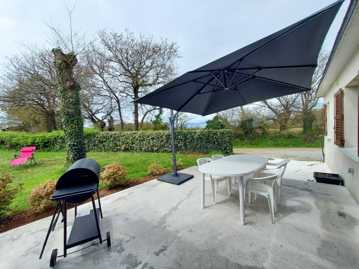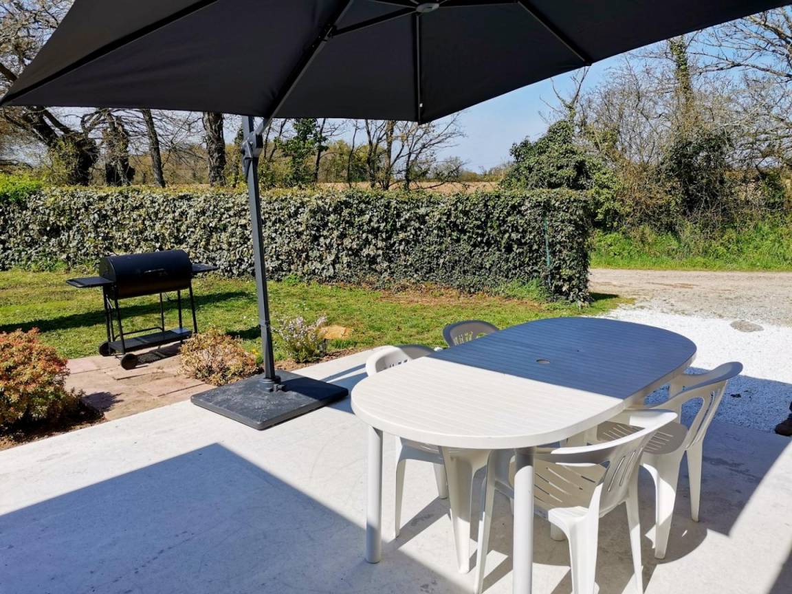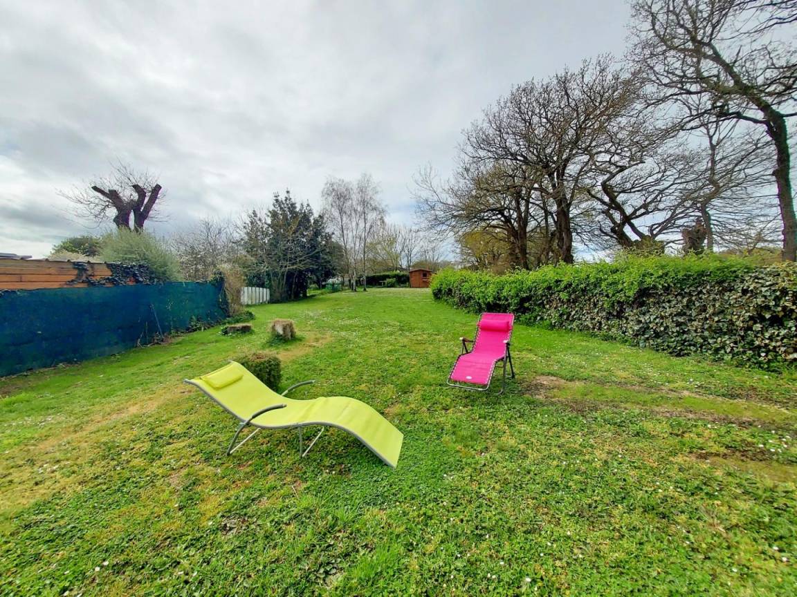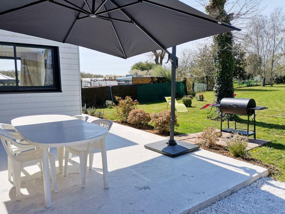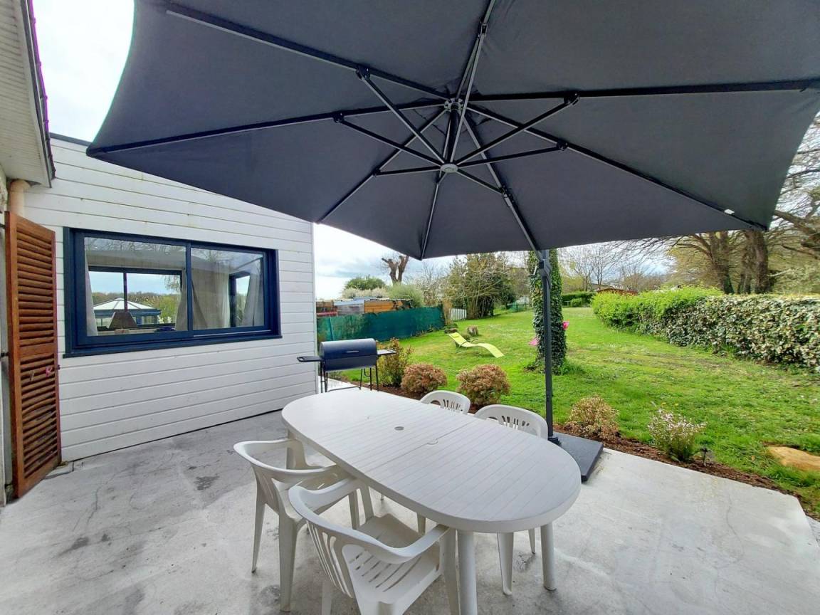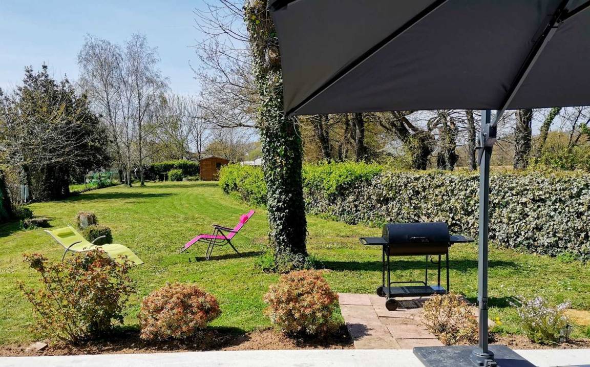 - Draußen: ein Garten (nicht geschlossen von 550 m²), eine Betonterrasse von 25 m², ein Holzunterstand zum Abstellen Ihrer Fahrräder und 2 private Parkplätze. Gîte, das an die Unterkunft der Eigentümer angrenzt, aber ohne vis-à-vis zwischen den 2 Häusern.