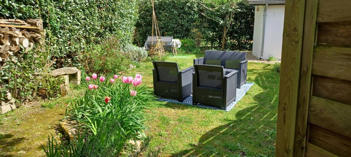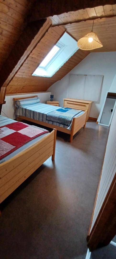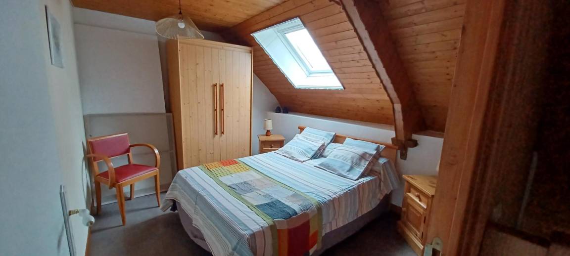 The cottage, is located in a dead end street which is also the starting point for hikes. On ground floor, you will enjoy a living room with dining area and lounge, a kitchen, a bathroom and separated toilet. 1st floor: 2 bedrooms (1 bed 140, 2 beds 90). Outside: a private and closed garden, without vis-à-vis with garden furniture and barbecue. A private parking lot in front of the cottage. Gite adjoining the owners' house and another house in summer.