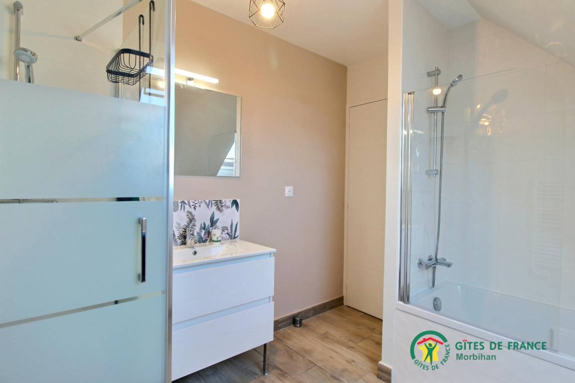 Sarzeau liegt ideal zwischen dem Golf von Morbihan und dem Atlantischen Ozean und profitiert von einem Mikroklima. Sarzeau heißt Sie das ganze Jahr über für einen Urlaub am Meer willkommen... Es ist ein unverzichtbares Reiseziel im Süd-Morbihan! Nutzen Sie bei Ihrem nächsten Aufenthalt die vielen Aktivitäten auf der Halbinsel: Wandern, Schwimmen und Bootfahren, Reiten, Freizeitparks, Thalassotherapie, Golf... Nicht zu verpassen: das Château de Suscinio, das Jung und Alt begeistern wird, und warum nicht einen Tag auf den Inseln (Belle Ile, Houat oder Hoedic) von Port Navalo aus! Nur 550 m vom Strand entfernt liegt dieses attraktive, moderne Ferienhaus mit perfekter Ausstattung und Bettwäsche.