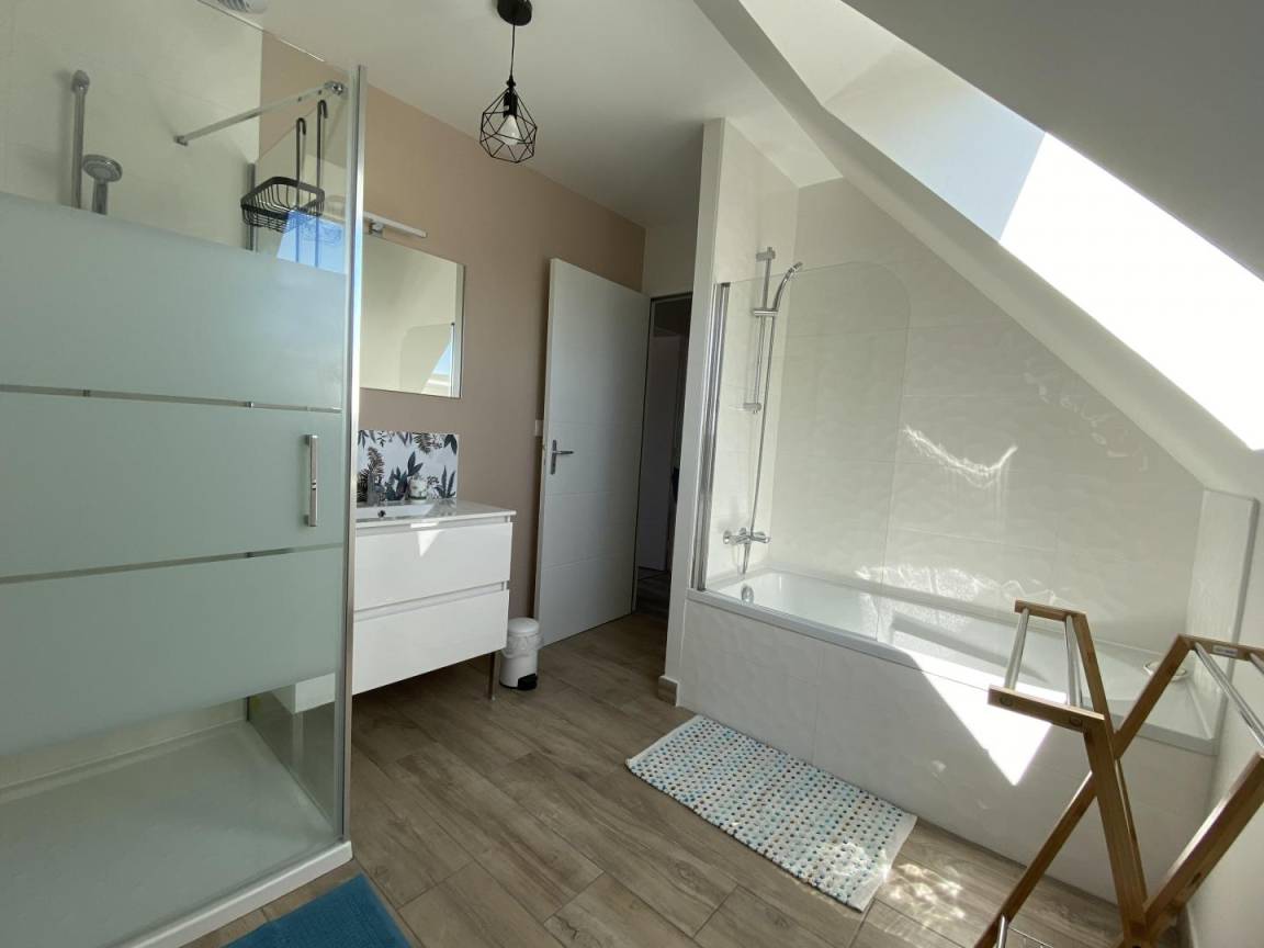 „Nous avons passé un séjour très agréable entre fin juillet et début août avec nos 2 enfants en bas âge. La maison est très lumineuse et parfaitement équipée. Nous avons été accueillis chaleureusement par les propriétaires qui étaient aussi disponibles pour répondre à nos questions et ont pu nous faire quelques recommandations. La maison est dans un lotissement au calme et proche de la plage (5 minutes à pied) avec de nombreuses visites/activités à proximité.“