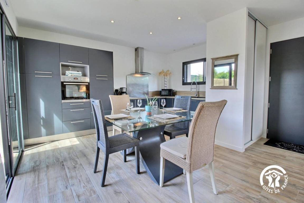 „Gite très agréable, confortable, bien équipé et conforme aux photos. Situation idéale, au calme et proche de toutes les activités: Plage, randonnée et vélo. Pour les amateurs de balades à vélo, Sarzeau a mis en place un réseau de pistes cyclables avec un système de guidage très performant que nous avons beaucoup apprécié.“