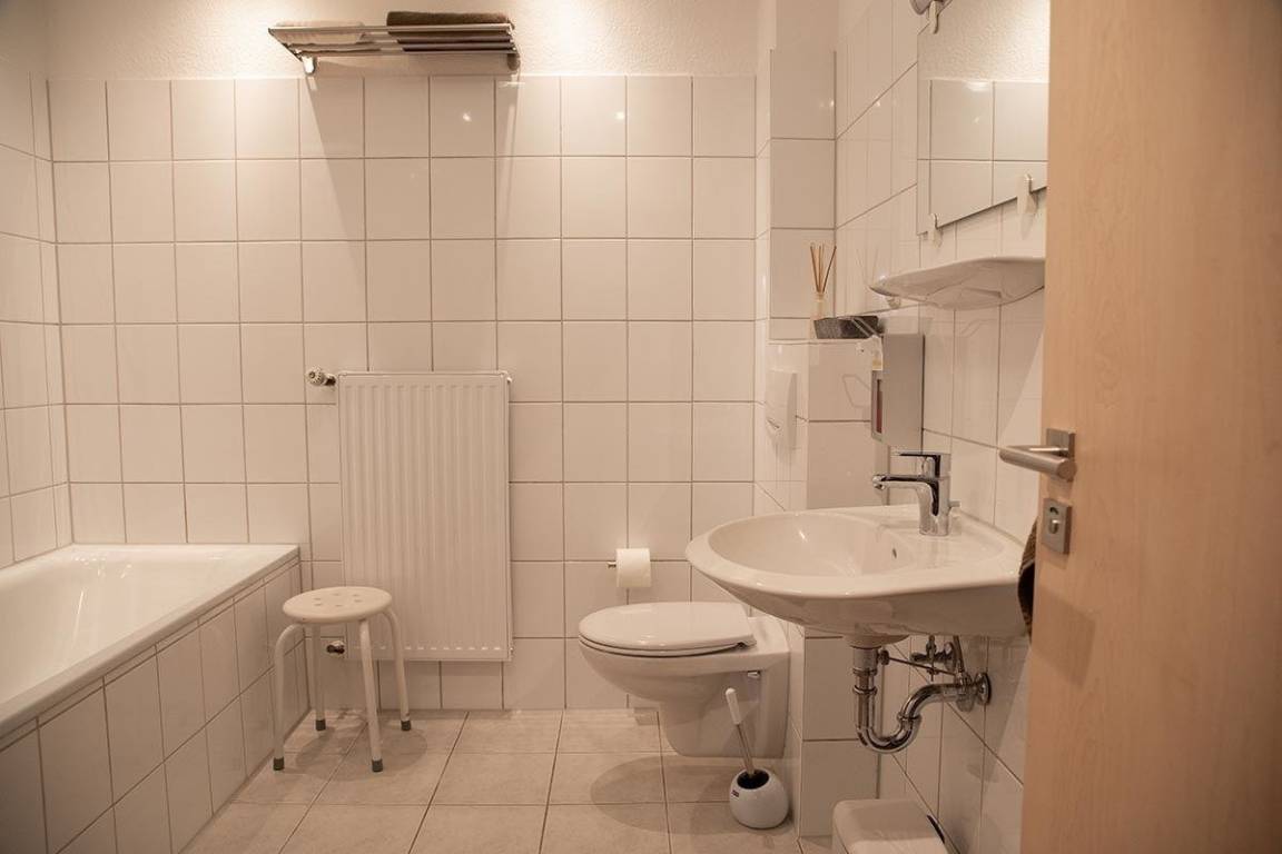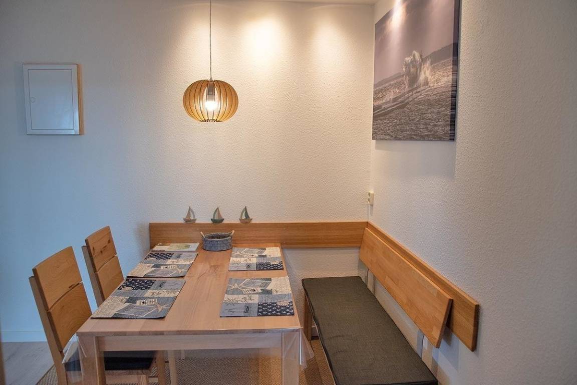 Die Ferienwohnung ist modern ausgestattet, besitzt ein großes Wohnzimmer und ein Schlafzimmer mit einem Doppelbett und einem Einzelbett. Die Küche ist umfangreich mit Kaffeemaschine, Toaster, E- Herd mit Backofen und Ceran / Kochfeld, Mikrowelle, Geschirrspüler und Kühl/Gefrierschrank ausgestattet. In der Wohnung gibt es eine Essdiele. Das Bad ist mit Dusche, Badewanne und WC ausgestattet. WLAN ist natürlich kostenlos.