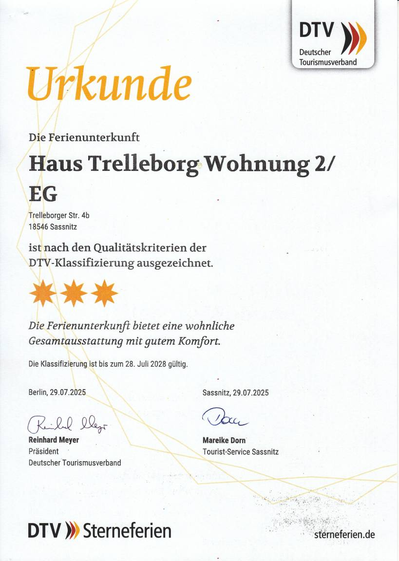 Die 55 m ² große und mit DTV Sternen klassifizierte Ferienwohnung 2 befindet sich auf der linken Seite im Erdgeschoss im Ferienhaus Trelleborg. Sie bietet mit ihren drei Zimmern ausreichend Platz für bis zu 5 Personen.