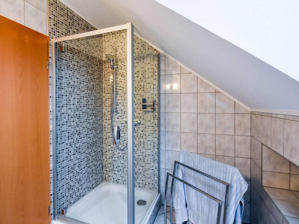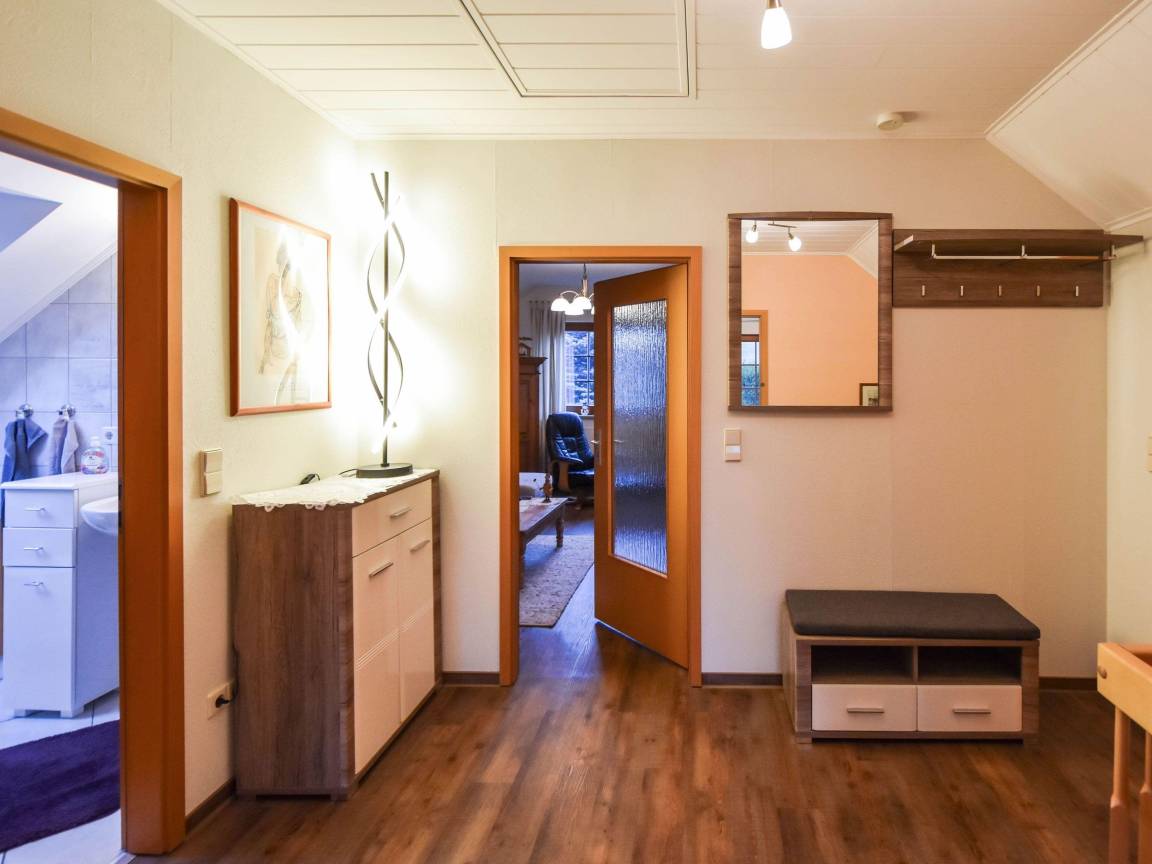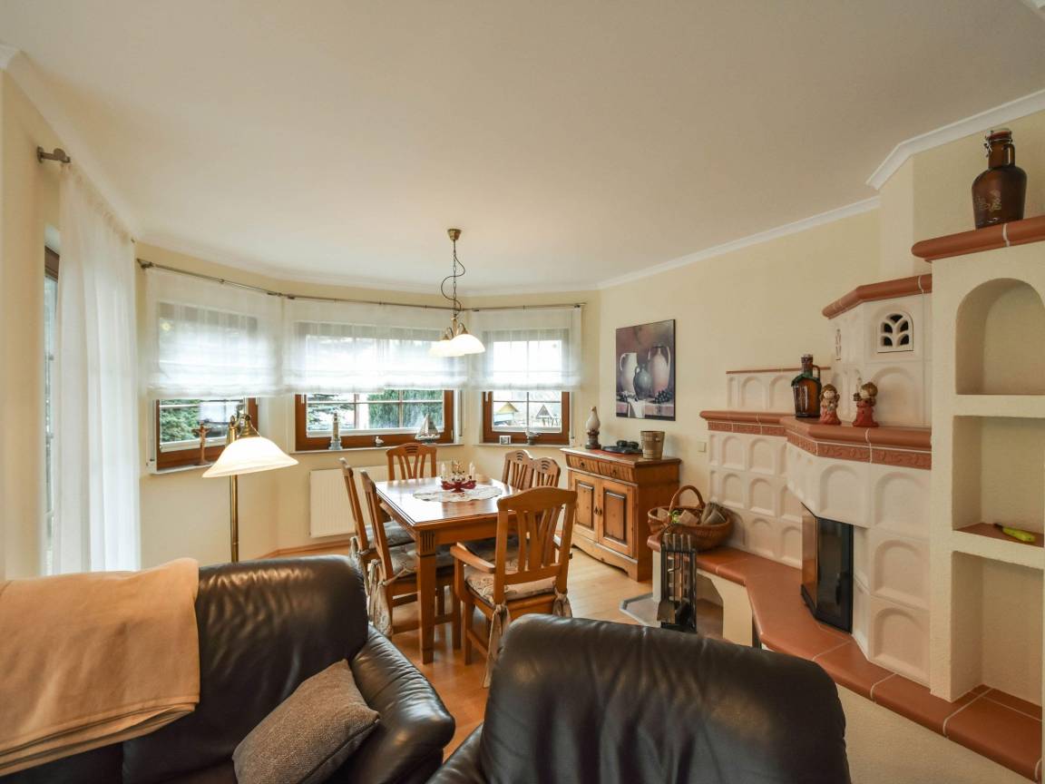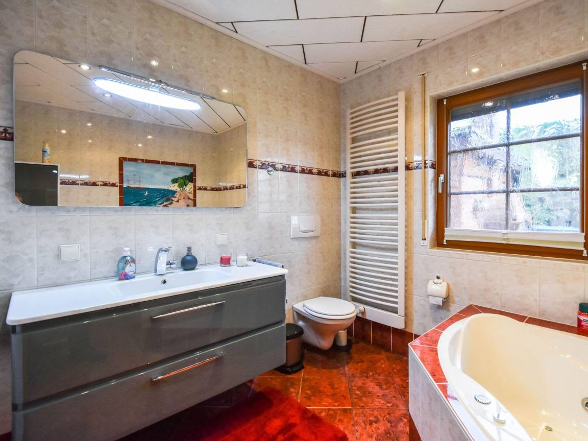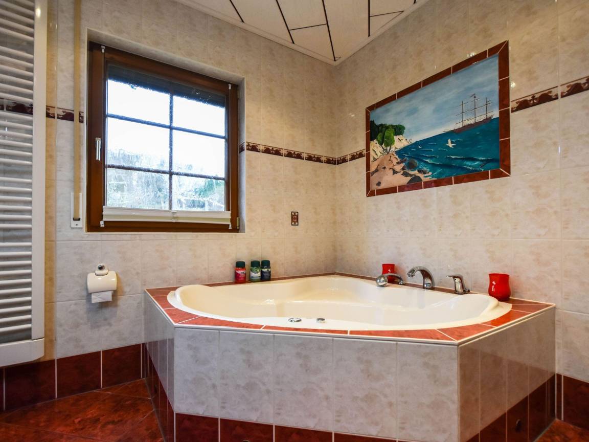 Das Ferienhaus ist sehr modern und gemütlich eingerichtet, ausgestattet mit Kamin und einem großen Wohn- und Essbereich im Erdgeschoss, mit einer separaten Küche, diese ist mit allem was man benötigt ausgestattet. Im Obergeschoss befinden sich zwei Schlafzimmer mit jeweils einem Doppelbett und einem gropßen Schlafzimmerschrank bieten Platz für 4 Personen, jeweils mit Balkonzugang. Ebenfalls im Erdgeschoss befindet sich ein großes Bad mit Whirlpool und ein Schlafzimmer mit Doppelbett und einem großen Schlafzimmerschrank.Im Obergeschoss gibt es ein zweites Wohnzimmer mit Schlafcouch, einem Einzelbett; Kaminofen und Fernseher sowie einem Schreibtisch. Daneben befindet sich ein zweites Bad mit Dusche und WC..