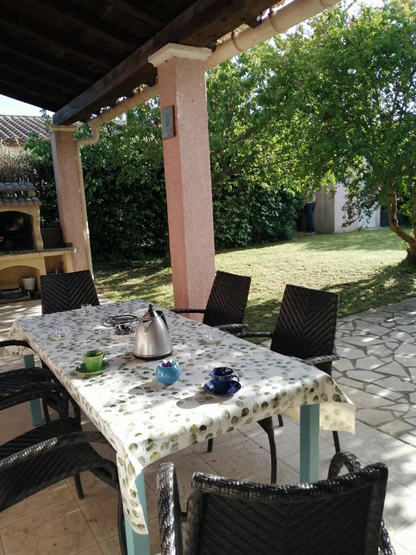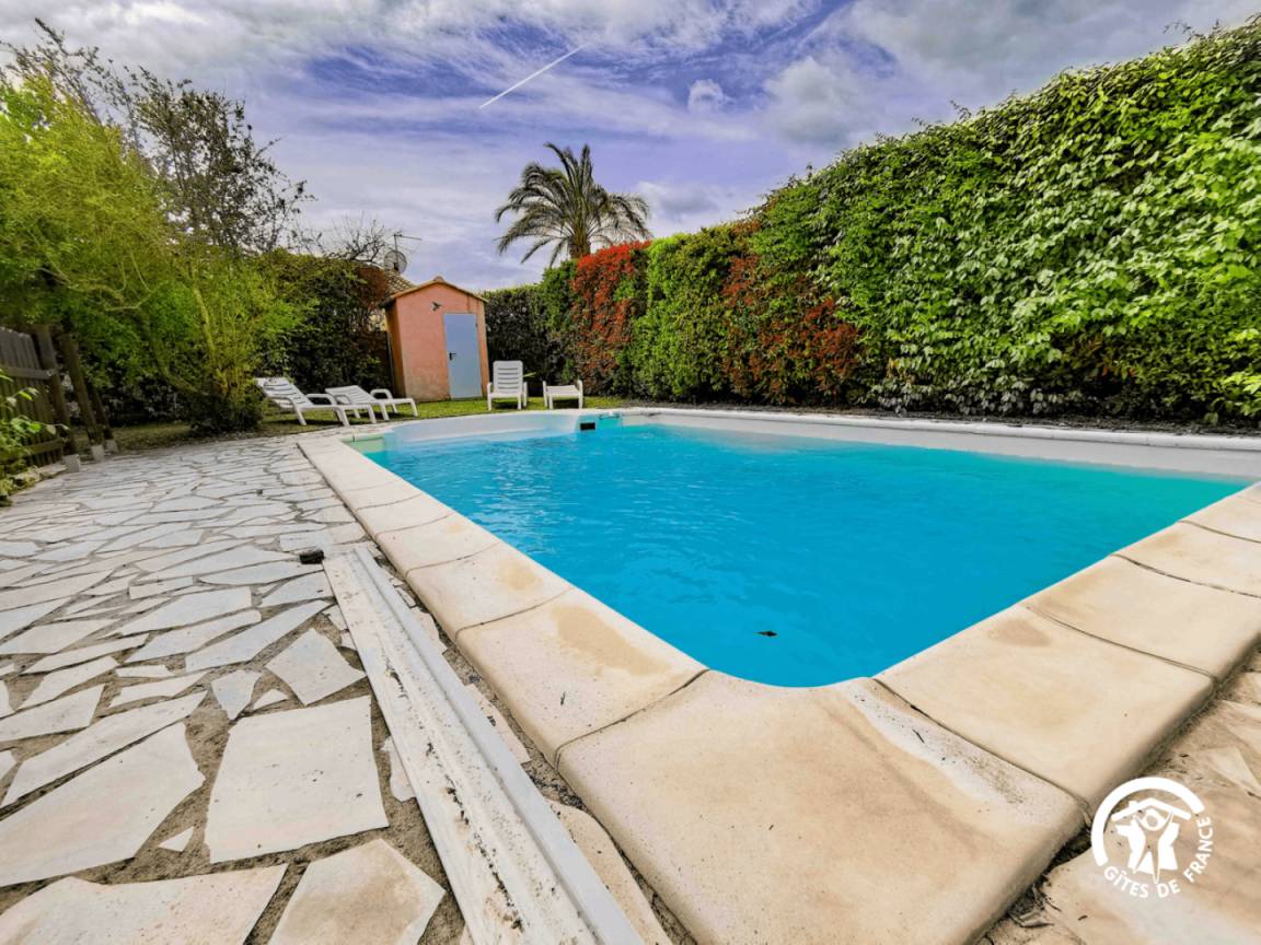 „Accueil des sympathiques propriétaires agréable, aux petits soins et disponibles si besoin, maison agréable en intérieur comme à l'extérieur avec une piscine aux bonnes dimensions pour quelques brasses comme pour barboter en famille, équipée de tout ce qu'il faut pour nos vacances en famille (y compris un coin "office du tourisme" pour orienter ses visites) . Bon choix donc, nous reviendrons probablement pour rendre visite à notre famille de l'herault...“