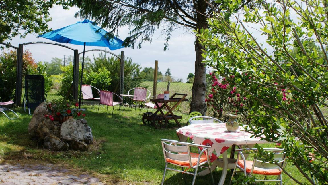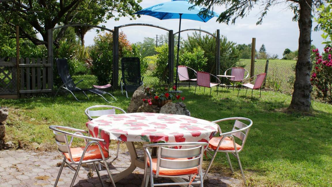Der Außenbereich besteht aus einem privaten Garten mit direktem Blick auf die Felder und Gartenmöbeln mit Grill.
