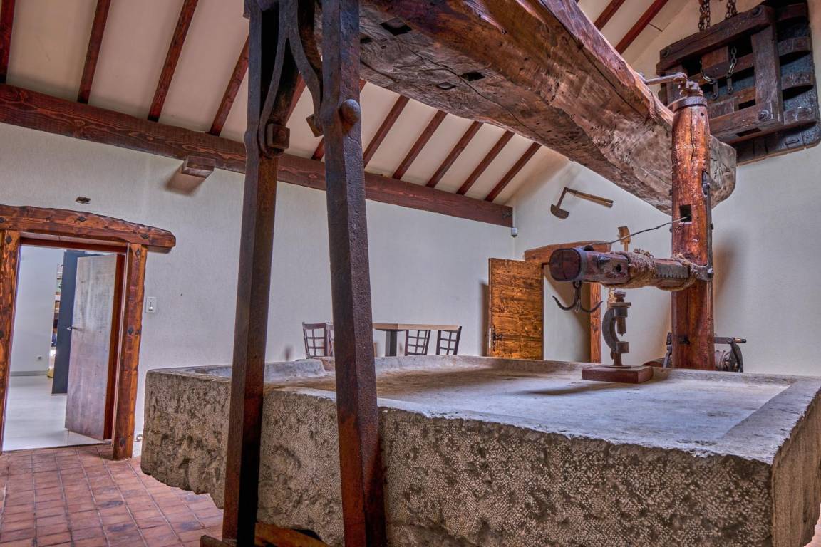 Die fünf Schlafzimmer sind wahre Oasen der Ruhe: Vier verfügen über ein eigenes Badezimmer, und eines bietet eine Sauna – ideal für alle, die sich rundum wohlfühlen möchten. Das Herrenhaus offenbart seine Seele auch durch eine antike Weinpresse, ein einzigartiges Stück, das von seiner Geschichte zeugt und ihm unvergleichlichen Charme verleiht.