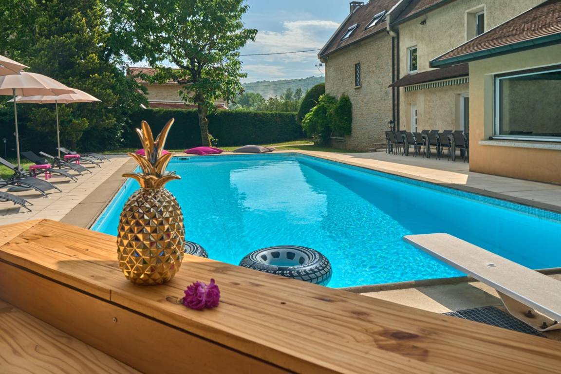 Willkommen im Manoir de Brenaz, einem charmanten Ferienhaus in Sault-Brénaz in der Region Ain, das Platz für bis zu 14 Personen bietet.