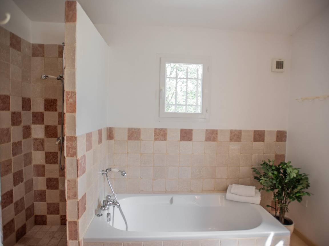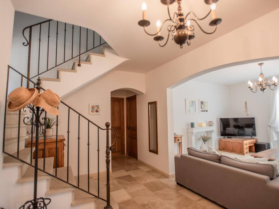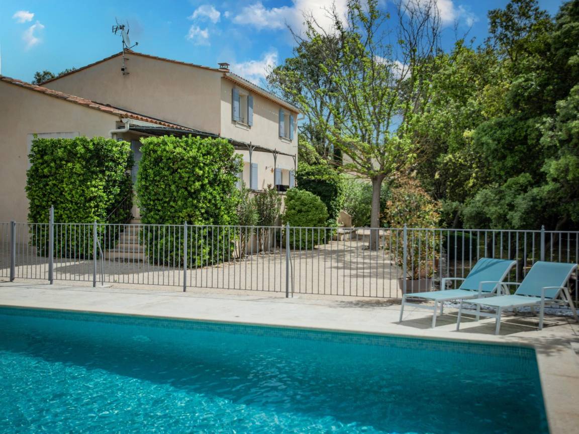 Hausbeschreibung : Diese schöne Villa mit Klimaanlage befindet sich auf einem großen, flachen und komplett eingezäunten Grundstück mit elektrischem Tor am Eingang. Kinder können hier im großen Garten mit schattenspendenden Bäumen und natürlich im privaten Pool spielen. Die Villa hat eine sehr gepflegte klassische provenzalische Einrichtung und ist geräumig mit vier Schlafzimmern, großen überdachten Terrassen und ideal für 1 oder 2 Familien. Auch Ihr vierbeiniger Freund wird sich hier sicher wohlfühlen