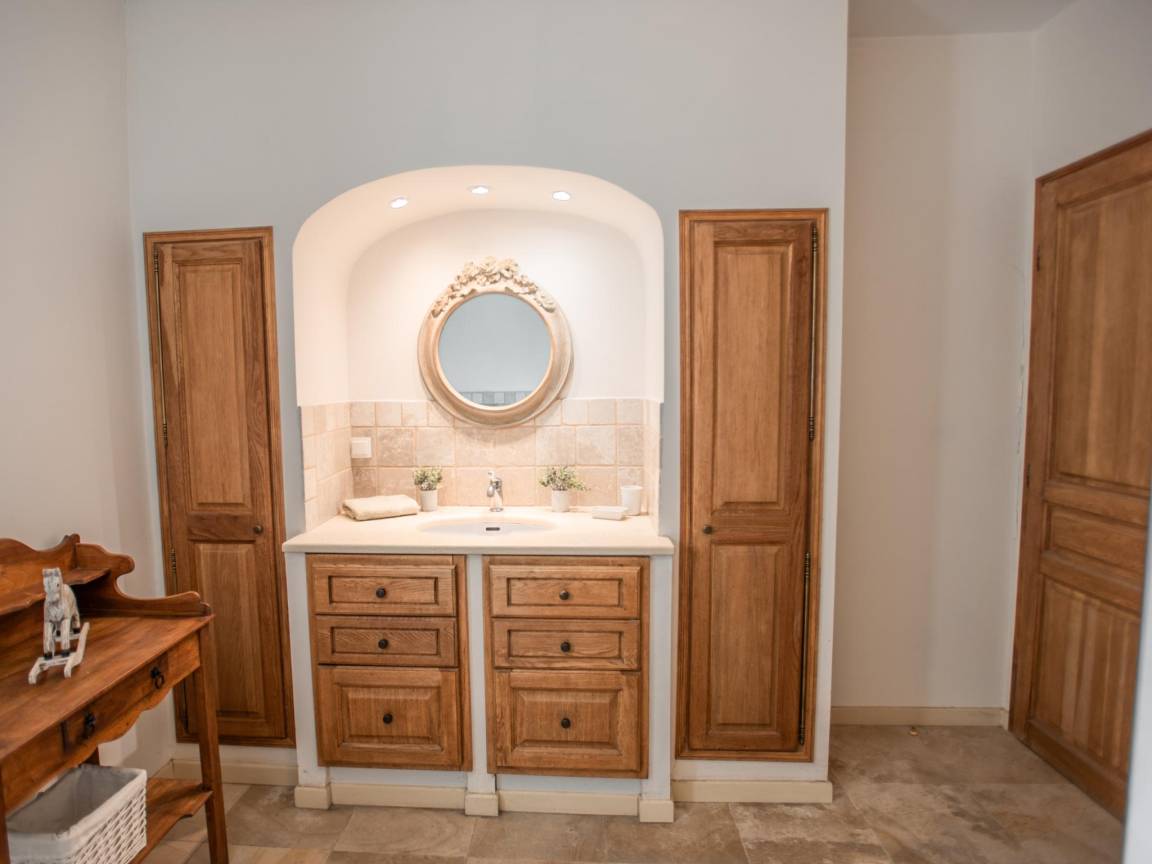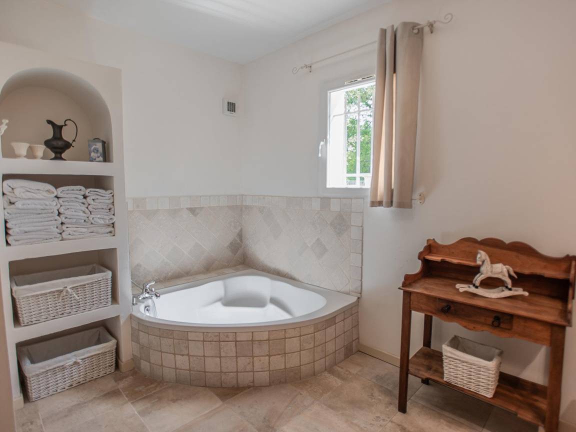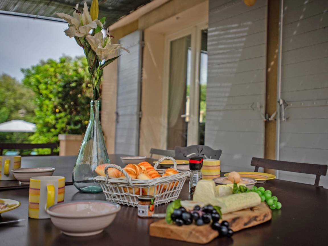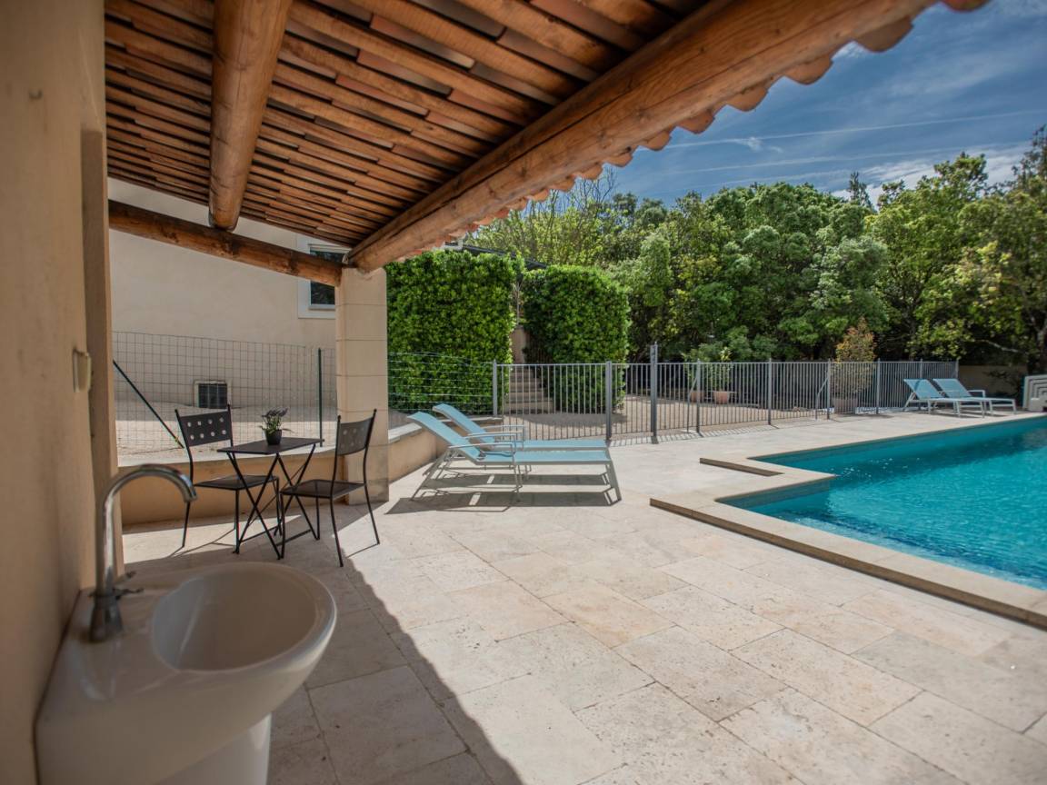 Hausbeschreibung : Diese schöne Villa mit Klimaanlage befindet sich auf einem großen, flachen und komplett eingezäunten Grundstück mit elektrischem Tor am Eingang. Kinder können hier im großen Garten mit schattenspendenden Bäumen und natürlich im privaten Pool spielen. Die Villa hat eine sehr gepflegte klassische provenzalische Einrichtung und ist geräumig mit vier Schlafzimmern, großen überdachten Terrassen und ideal für 1 oder 2 Familien. Auch Ihr vierbeiniger Freund wird sich hier sicher wohlfühlen
