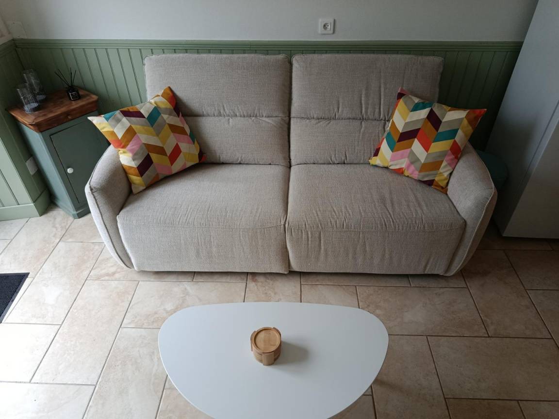 „Très beau gîte, décoré avec goût, propre et confortable, très bon accueil des propriétaires. Le point négatif étant le surplus de 35 euros que nous avons dû payer pour une surconsommation de chauffage, assez cher pour 3 nuitées, Il serait opportun d’en d’informer les locataires dès leur entrée.“