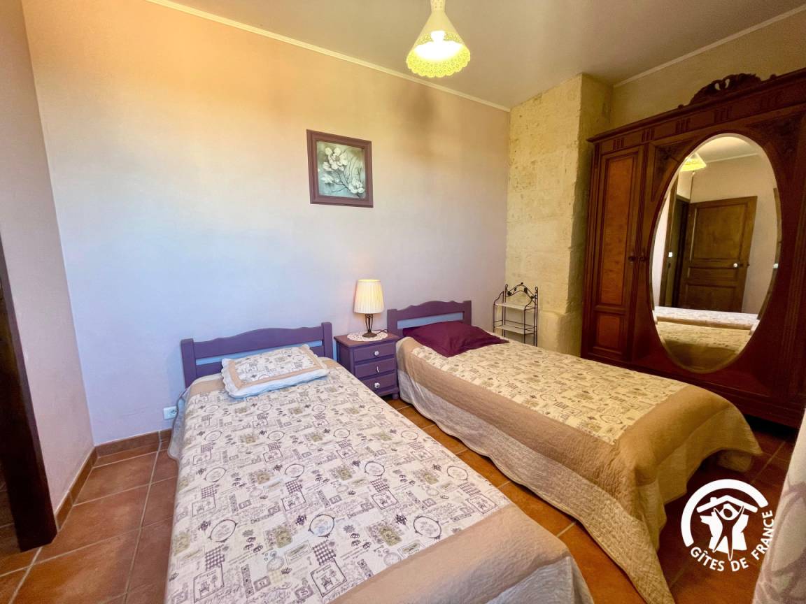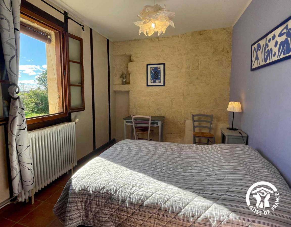 „The gîte and garden are very private and spacious. The owners are incredibly welcoming and helpful and we would highly recommend tasting their wines and learning more about their story. They could really do with a bigger bed in the master bedroom - it's a lovely big room and particularly when it's hot, having a bit more space is really welcome, a dehumidifier in the kitchen, and some small amenities like providing hand soap in the bathroom. The location is rural but very close to a nearby town with a large supermarket and several dining options. The owners were also really helpful in sharing some local attractions tailored to the family. Overall we had a very pleasant stay and the gîte was good value for money.“