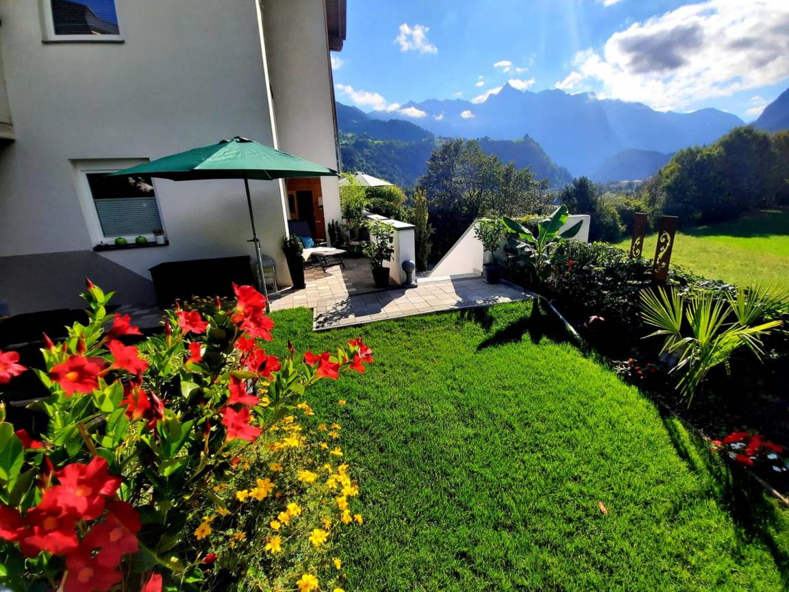 „Wunderbar komplettes und luxuriöses Anwesen mit schönem Garten in Südlage. Zentral gelegen und sehr freundlicher Gastgeber. Schöner Blick auf die Berge.“