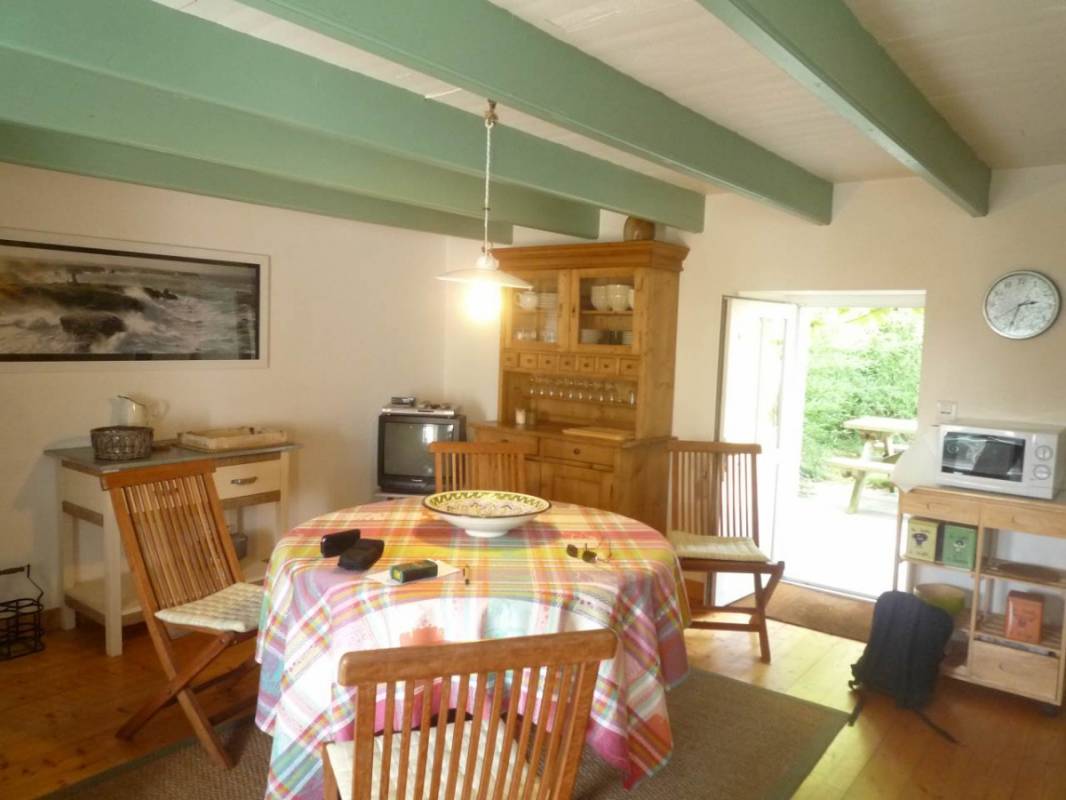 Entdecken Sie Sauzon, den berühmten Yachthafen von Belle Ile, mit seiner herzlichen Atmosphäre, atemberaubenden Landschaften mit zerklüfteten Küsten, kleinen Buchten mit türkisblauem Wasser und der Landspitze Pointe des Poulains. Wassersportmöglichkeiten und Freizeitangebote auf dem Land. Das Ferienhaus liegt ideal mitten in Sauzon: Hafen, Geschäfte und Strand 200m. Nutzen Sie die Terrasse und den Garten für Ruhe und Erholung. Haus über 3 Stockwerke verteilt, mit im EG: Wohnbereich mit Wohnzimmer/Esszimmer/Kochecke, 1. Stock: 1 Zi. (1 Bett 140), Bad mit Dusche/WC, 2. Stock: 1 Zi. (2 Betten 90). Unterstand für Fahrräder gleich nebenan.