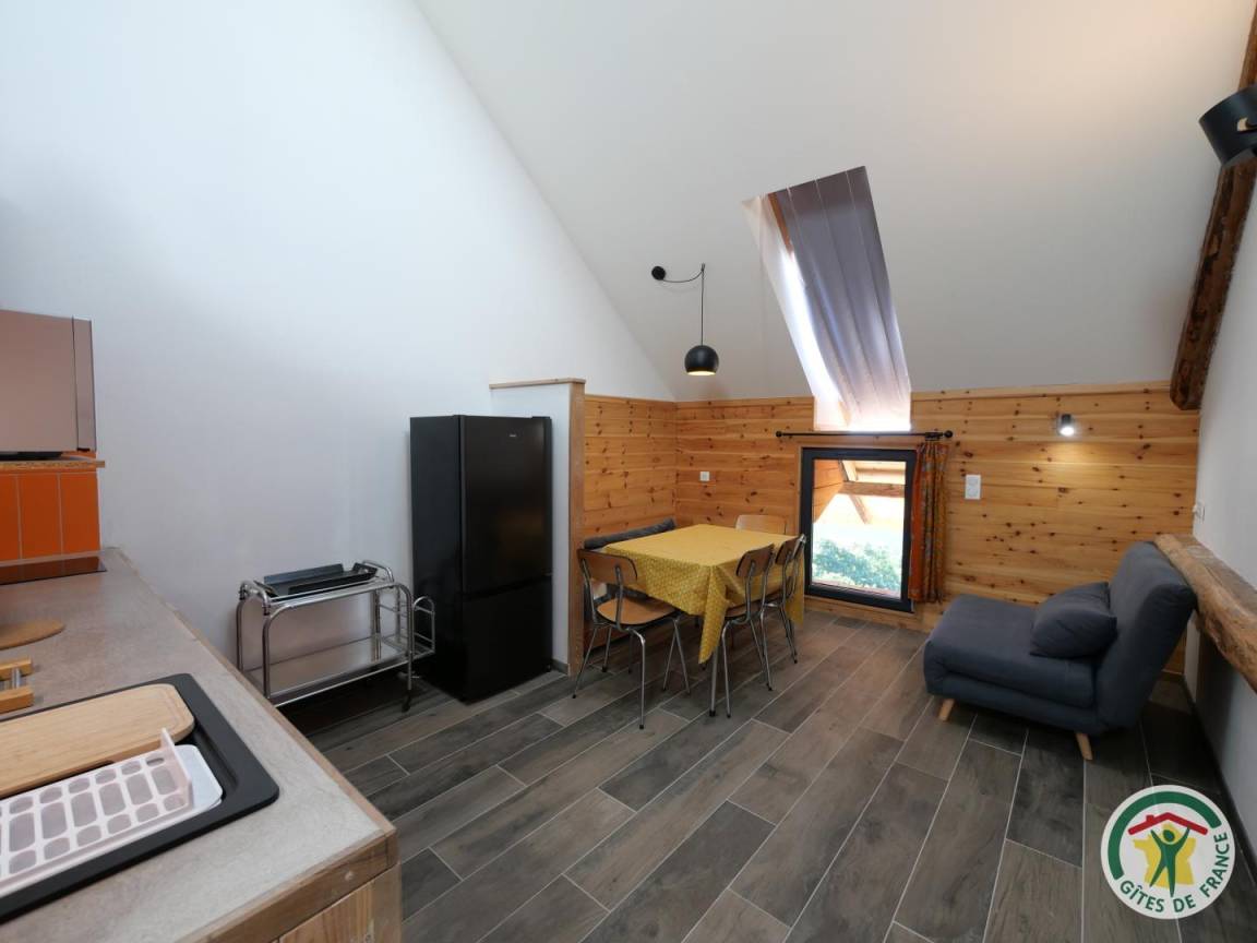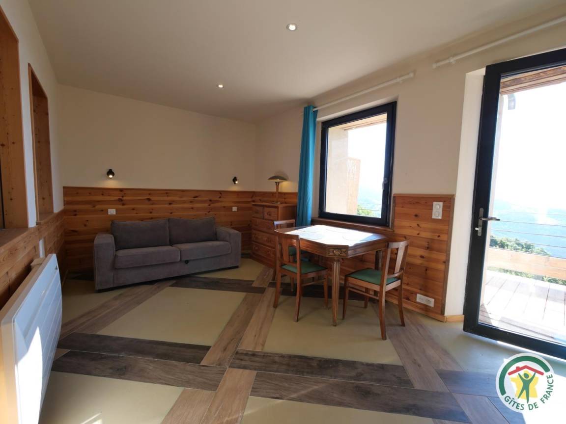 „Gite de 11 places, nous étions 9, c'est spacieux tout le monde peut trouver un espace soit pour lire, regarder la télé, jouer à des jeux de société ou au ping pong. La cuisine est bien équipée, tout y est même la cafetière à dosette (Nespresso).La literie n'est pas vieille et c'était des dimensions supérieures à 140x190 pour les lits 2 places. Les chambres sont bien aménagées. Propriétaire sympathique, il loge juste à coté. C'est calme, adresse à garder ! belle vue sur le lac et les montagnes.“