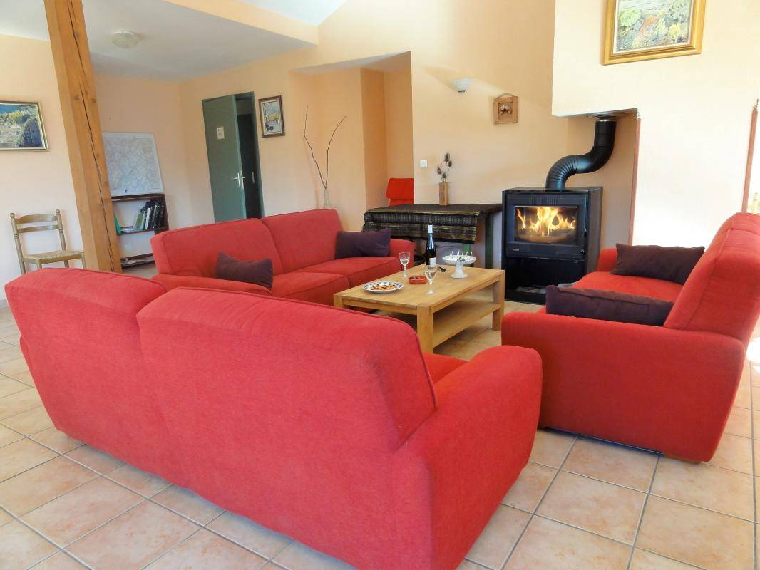 „La vue du salon spacieux et confortable est très belleLa cheminée diffuse une chaleur qui favorise farniente et jeux au retour des pistes de la station proche. Belle luminosité grâce à de très grandes baies vitrees.Salle de bains dans chaque chambre. cuisine de collectivité très pratique pour de grandes réunion et de bons repas...Bref si l on ajoute l accueil attentif et la salle de jeu en bas...l idéal pour une famille ou un groupe d'amis.Merci“