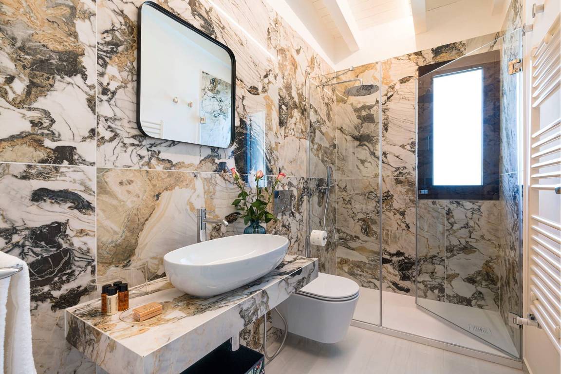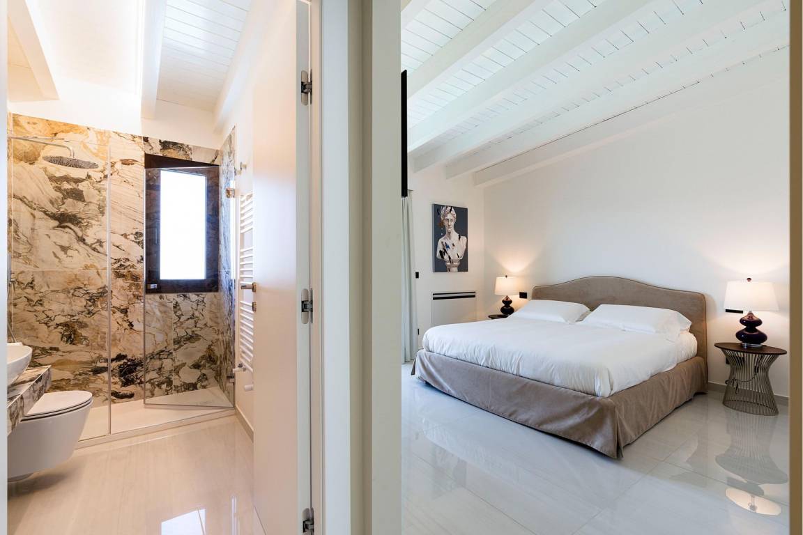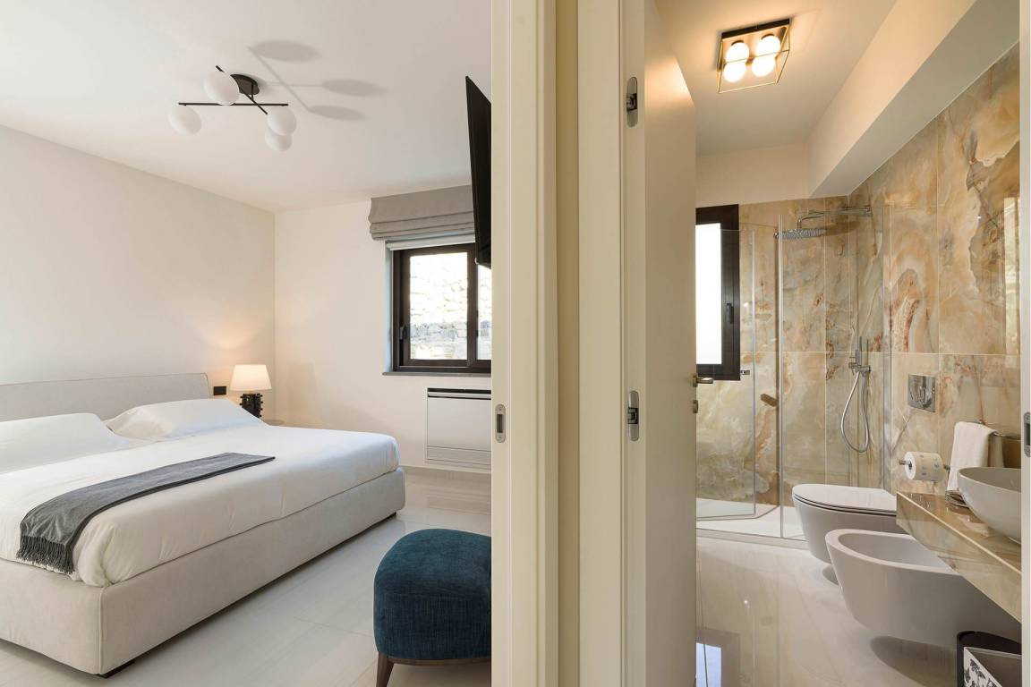 Villa Zafferano ist eine großzügige Villa mit einer Gesamtfläche von 5 Schlafzimmern und 5 Bädern für maximal 10 Gäste. Die Räume verteilen sich über mehrere Ebenen und bieten ausreichend Platz und Privatsphäre für größere Gruppen und Familien. Jedes Schlafzimmer ist als Rückzugsort gestaltet und profitiert von der natürlichen Schönheit der Hanglage.