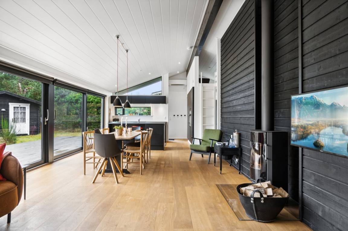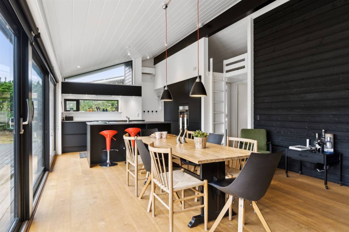 Das Ferienhaus eignet sich für 6 Personen. Die Ferienunterkunft hat eine Wohnfläche von 90 m² und wurde 2017 gebaut. Haustiere dürfen nicht mitgebracht werden. In der Ferienunterkunft ist eine energiesparender Luft zu Luft Wärmepumpe installiert. Die Ferienunterkunft ist mit Waschmaschine ausgestattet. Tiefkühlmöglichkeit mit 64 Liter Nutzinhalt. Es gibt außerdem einen Kaminofen. Für die jüngsten Feriengäste ist 1 Kinderhochstuhl vorhanden.