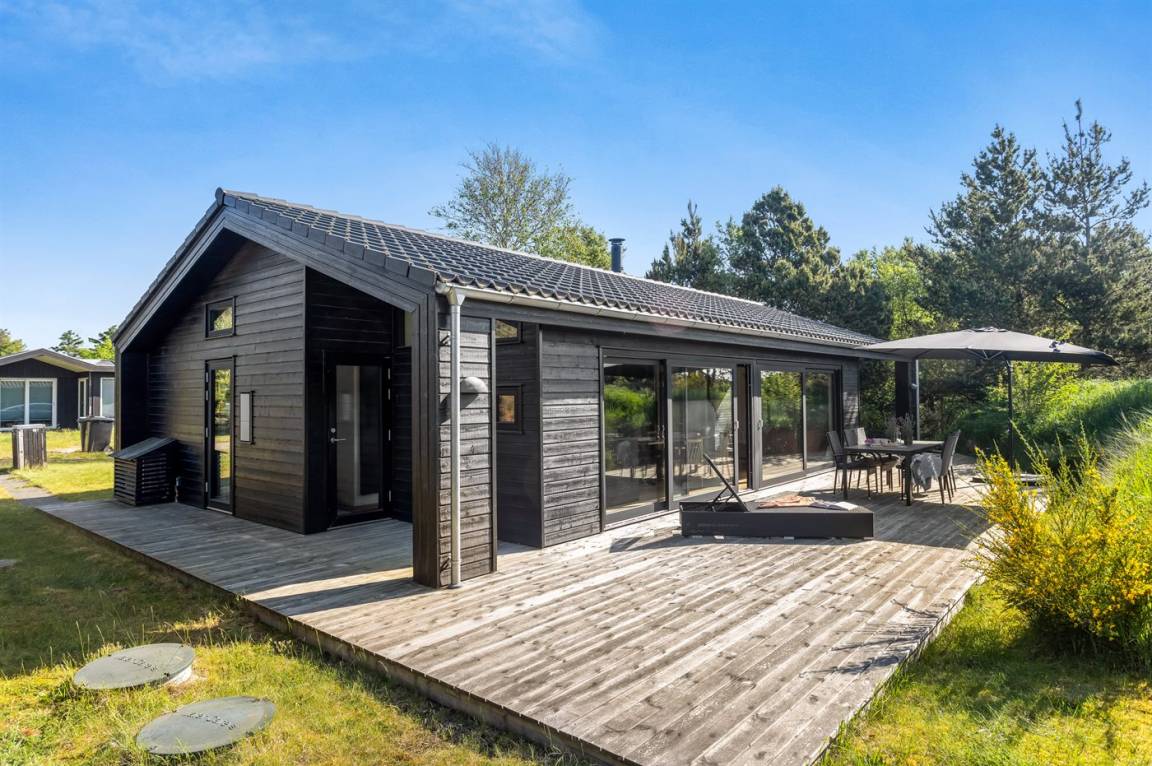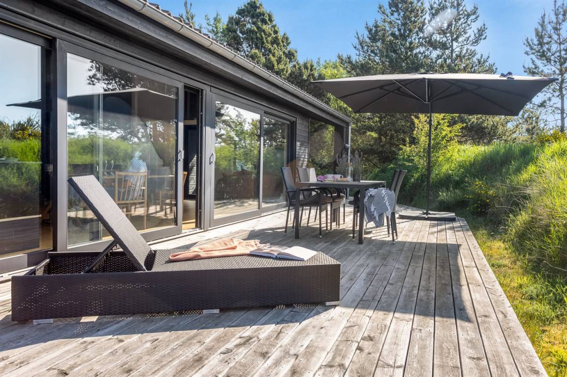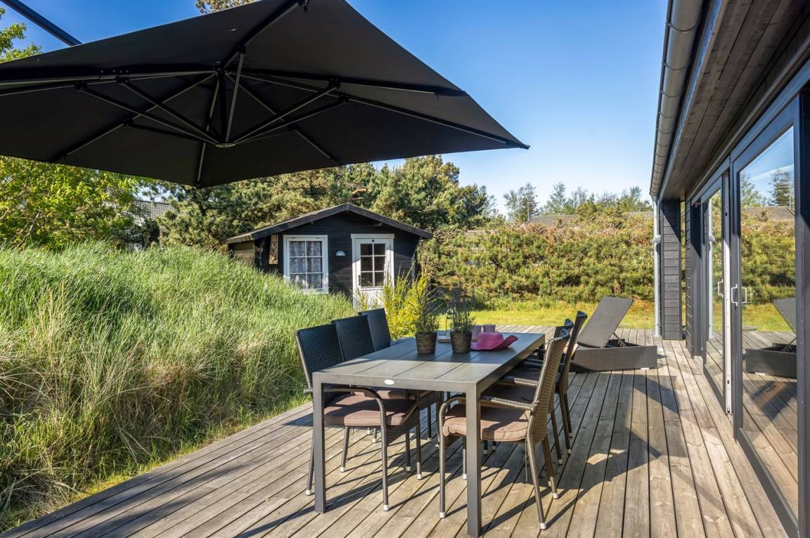 In der ersten Reihe zu dem schönen kinderfreundlichen Sandstrand liegt dieses herrliche Ferienhaus. Öffne eine der Gartentüren und höre dem beruhigenden Klang der Wellen zu, die vom Meer her rauschen, oder finde einen Platz in der Sonne auf der schönen nach Süden ausgerichteten Terrasse, von der aus du den herrlichen Blick auf die Dünen genießen kannst.