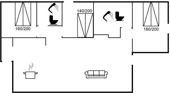 SchlafverhältnisseDie Schlafplätze verteilen sich auf 3 Schlafräume. 6 Schlafplätze in Doppelbetten.1 Schlafplatz in einem Etagenbett. Ferner steht ein Kinderbett zur Verfügung.