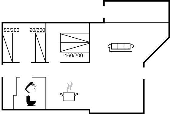 SchlafverhältnisseDie Schlafplätze verteilen sich auf 2 Schlafräume. 2 Schlafplätze in einem Doppelbett. 2 Schlafplätze in Einzelbetten.