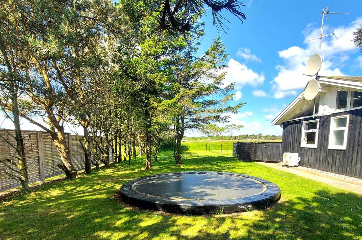 DraußenDie Ferienunterkunft liegt auf einem 1503 m² großen Naturgrundstück. Das Grundstück ist eingezäunt. Die Entfernung zum Meer beträgt 100 m. Die nächste Einkaufsmöglichkeit liegt 7000 m entfernt. Es steht ein 50 m² Terrassenareal zur Verfügung. Geräteraum. Trampolin. Es steht ein Grill zur Verfügung. Parkplatz auf dem Grundstück.