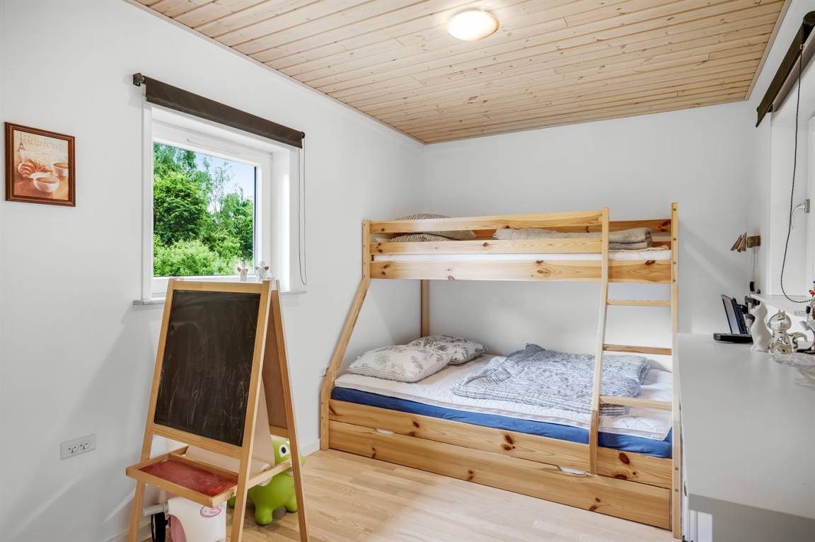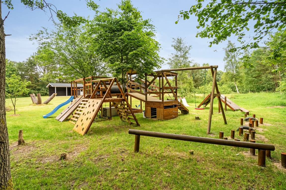 Ein schönes Ferienhaus auf einem riesigen Grundstück mit Wald drumherum. Hier ist Platz zum Toben mit Ballspielen, Verstecken, Schaukeln oder einfach nur zum Entspannen und die Natur genießen - vielleicht hast du Glück und siehst eines der vielen Tiere des Waldes.