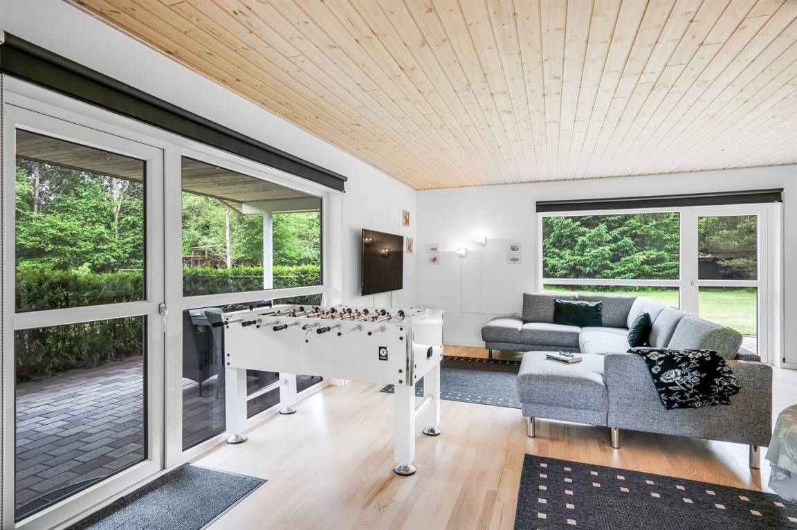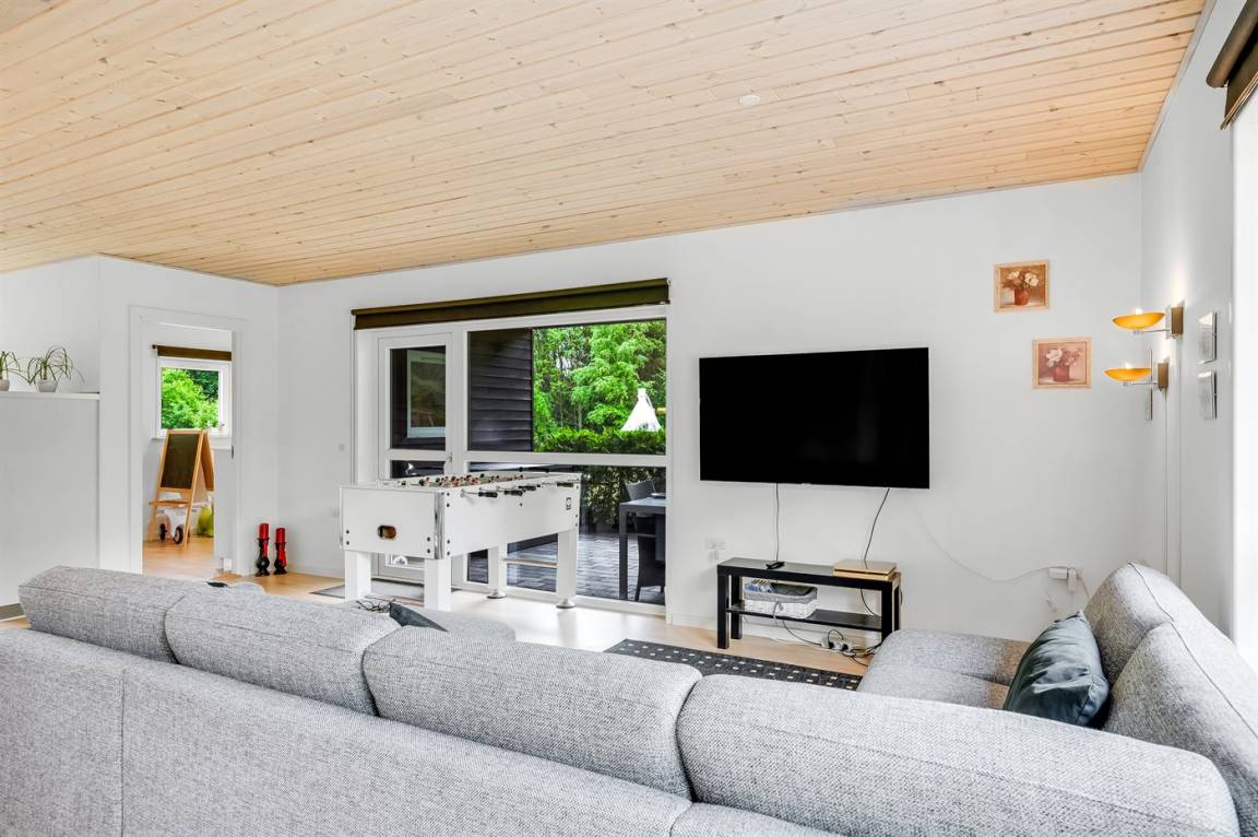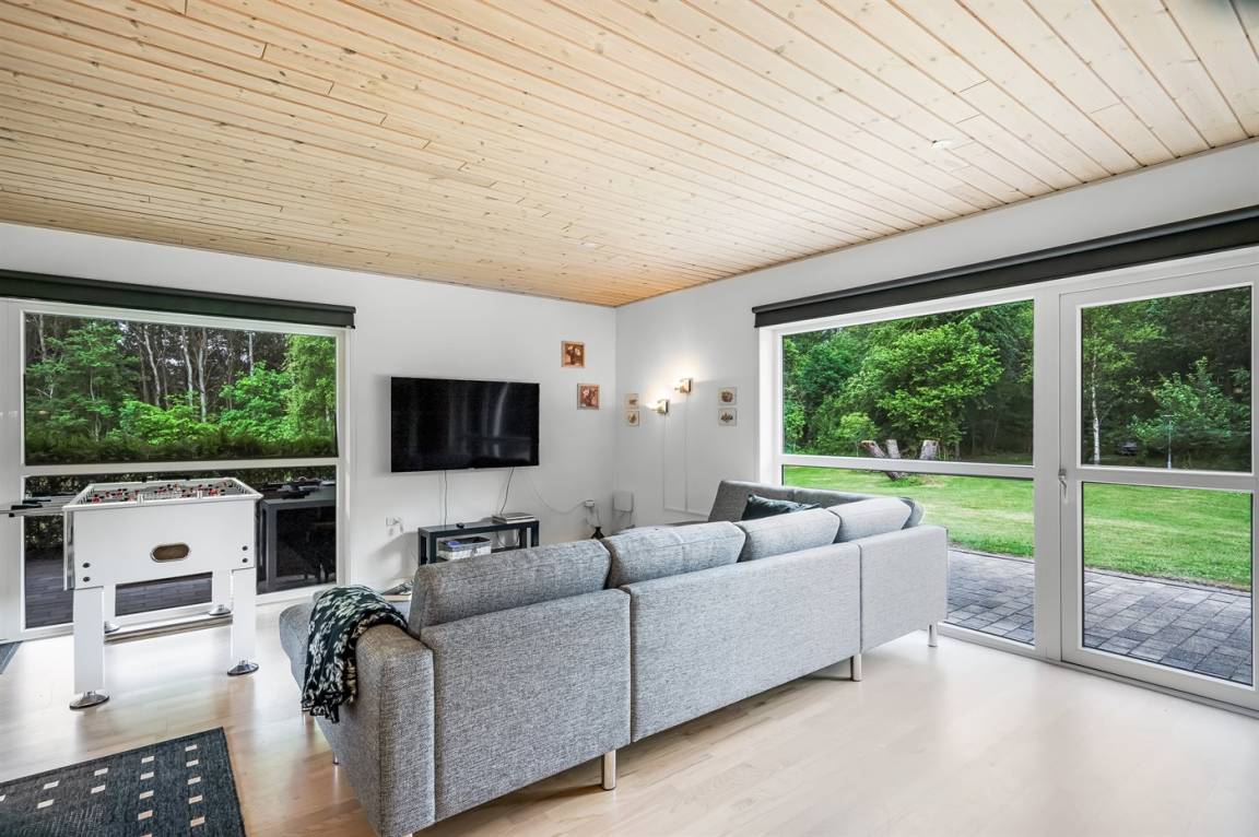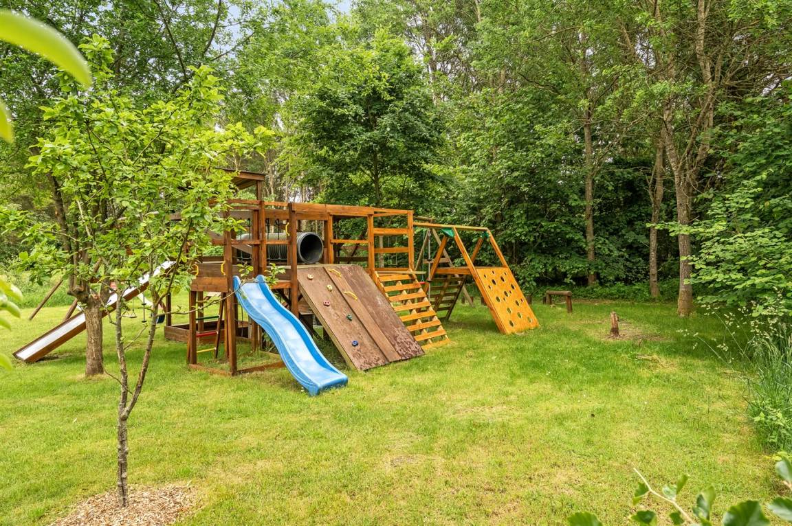 DraußenDie Ferienunterkunft liegt auf einem 8470 m² großen Naturgrundstück. Die Entfernung zum Meer beträgt 1430 m. Die nächste Einkaufsmöglichkeit liegt 3070 m entfernt. Es steht ein offenes Terrassenareal zur Verfügung. Außerdem gibt es überdachte Terrasse. Schaukel. Sandkasten. Rutsche. Fußballtor.Lagerfeuerstelle. Es steht ein Grill zur Verfügung. Es ist ein Ladestecker für Elektroautos installiert. Mit einer Ladeleistung von 11 kW. Parkplatz auf dem Grundstück.