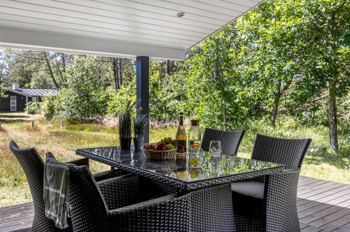 DraußenDie Ferienunterkunft liegt auf einem 3000 m² großen Naturgrundstück. Die Entfernung zum Meer beträgt 150 m. Die nächste Einkaufsmöglichkeit liegt 2000 m entfernt. In einem Abstand von 7000 m gibt es einen Golfplatz. Es steht ein 35 m² Terrassenareal zur Verfügung. Außerdem gibt es 12 m² überdachte Terrasse. Geräteraum. Sandkasten.Gasgrill steht zur Verfügung.. Dieser muss von den Gästen bei Abreise gereinigt hinterlassen werden. Parkplatz auf dem Grundstück.