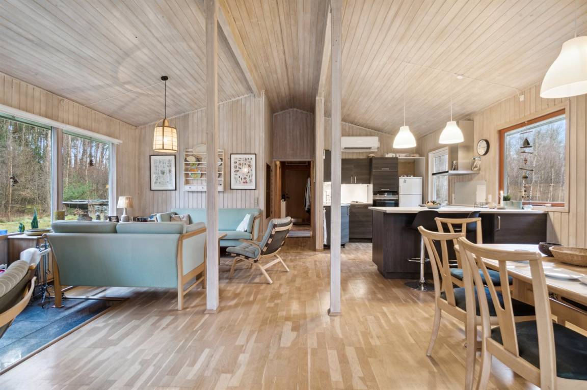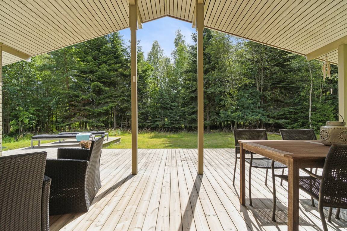 Dieses schöne und gemütliche Ferienhaus liegt herrlich auf einem großen Naturgrundstück in völlig ungestörter und ruhiger Umgebung. Hier gibt es reichlich Wildtiere, und man fühlt sich wirklich eins mit der Natur, egal ob drinnen oder draußen. Das Grundstück lädt auch zu Ballspielen und Spiel ein, mit viel Platz für Kinder zum Toben. Wenn du einen ungestörten Urlaub in ruhiger und naturschöner Umgebung verbringen möchtest, ist dieses Haus die perfekte Wahl, da das gesamte Grundstück auch von hohen Bäumen umgeben ist und sich praktisch in einem Wald-/Plantagenbereich befindet. Etwa 1300 Meter entfernt liegt das Meer mit dem feinen Sandstrand, wo die Familie stundenlang Spaß haben kann.