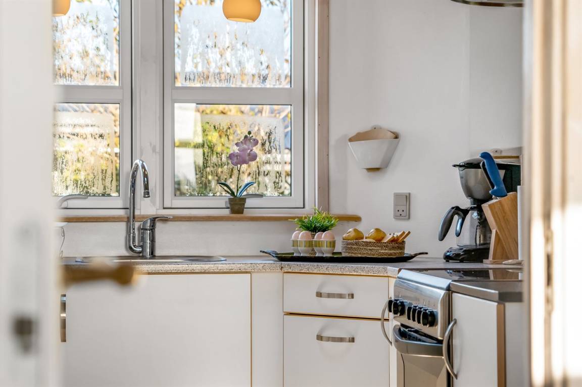 KücheDie Küche ist mit Kühlschrank ausgestattet. Außerdem gibt es 4 Keramik-Kochfelder, Umluftofen.