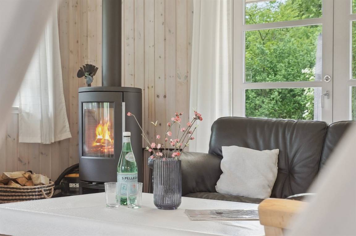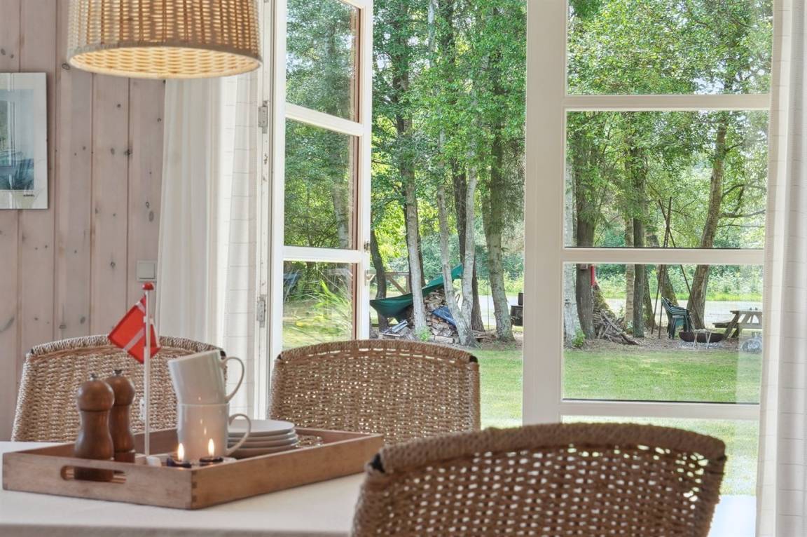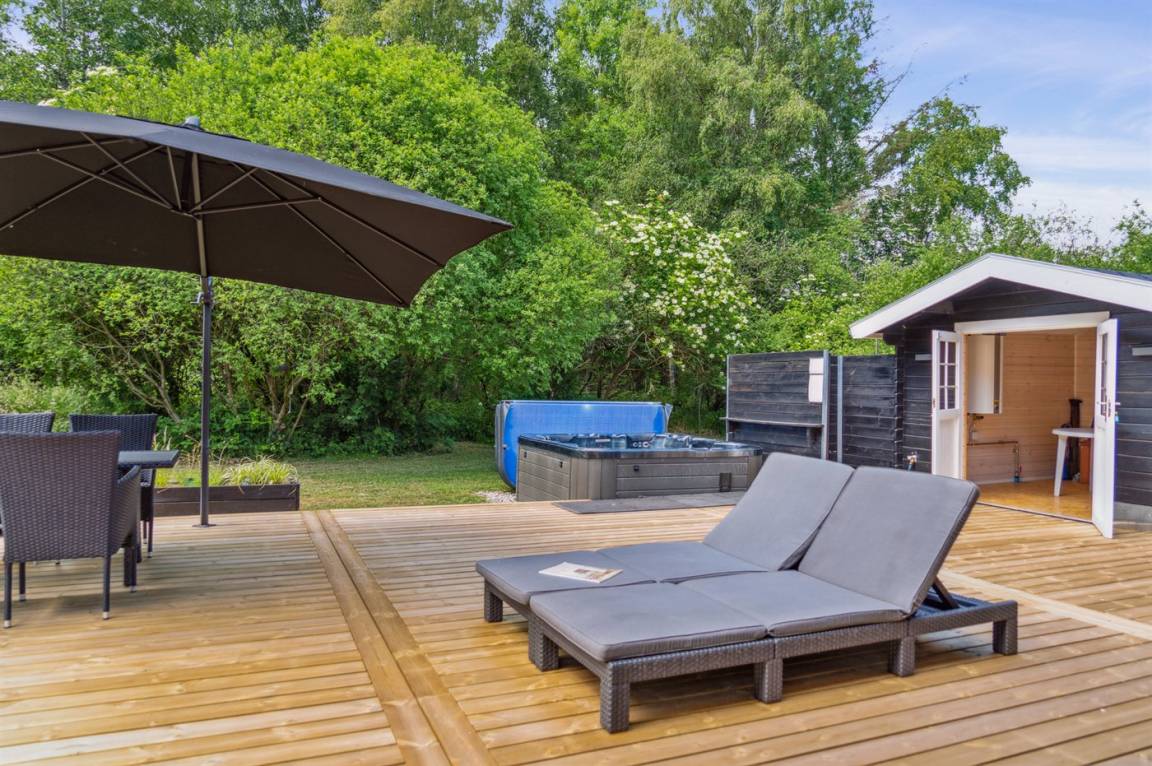 Zum Haus gehört ein Outdoor-Whirlpool für 6 Personen sowie eine Außendusche und auf der Terrasse befindet sich ein kleines Häuschen, das als Umkleidekabine dient. Sowohl vom Haus als auch von der Terrasse aus haben Sie Blick auf einen kleinen See, der sich auf der anderen Seite vom Zaun befindet und somit verhindert, dass kleine Kinder oder der Vierbeiner ins Wasser fallen.