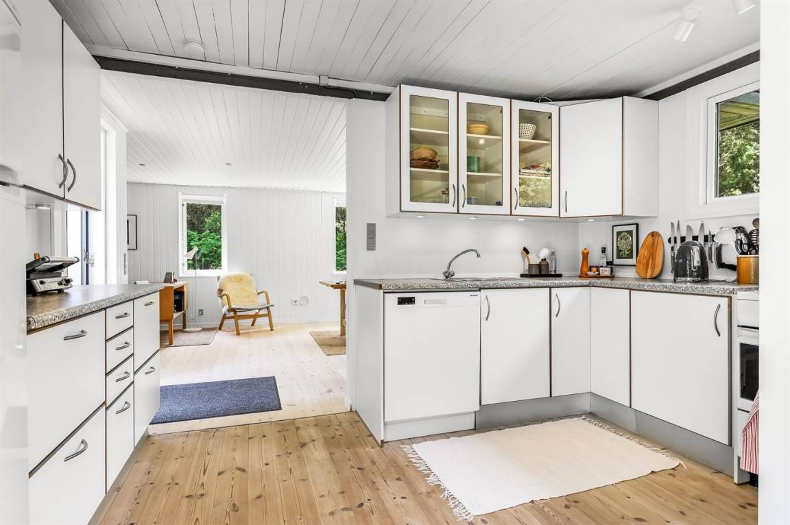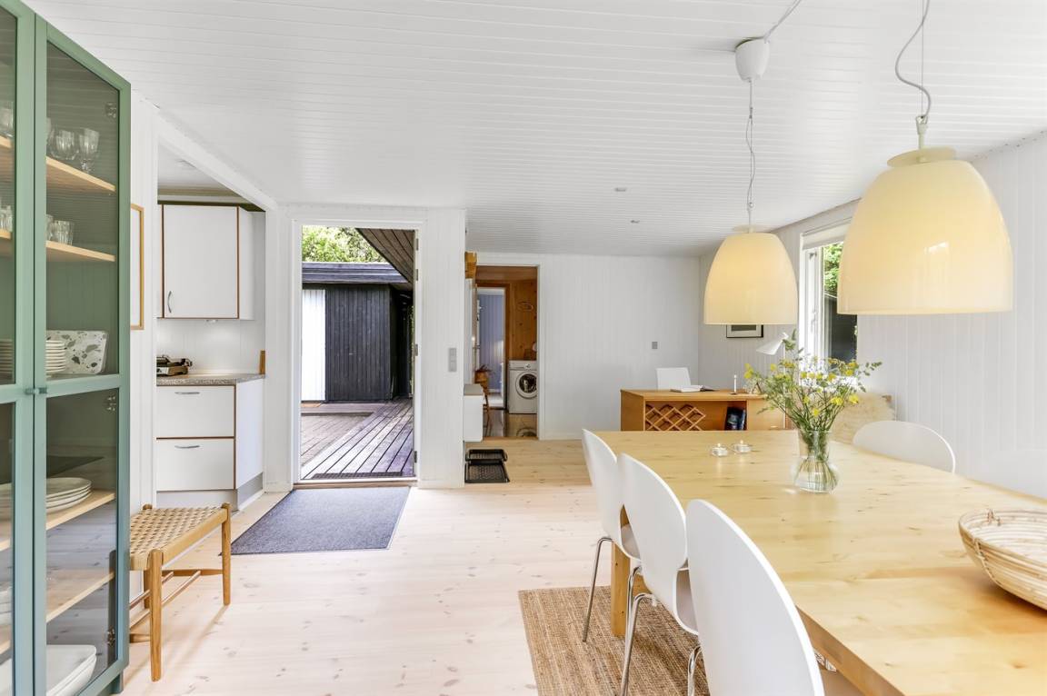 Nur 300 m entfernt liegt ein schöner Badestrand. Der Strand ist kinderfreundlich und gut zum Stand-up-Paddling oder Seekajakfahren geeignet. Die idyllische Handelsstadt Sæby ist nur 8 km entfernt. Hier warten viele gute Restaurants, Cafés und interessante Geschäfte sowie ein Schwimmbad mit Wellnessbereich auf Sie. Wer Lust auf einen Spaziergang hat, kann am Wasser entlang in die Stadt gehen. Die Dünenheidelandschaft Professorens Plantage, die an die Ferienhaussiedlung angrenzt, bietet schöne Wanderwege.