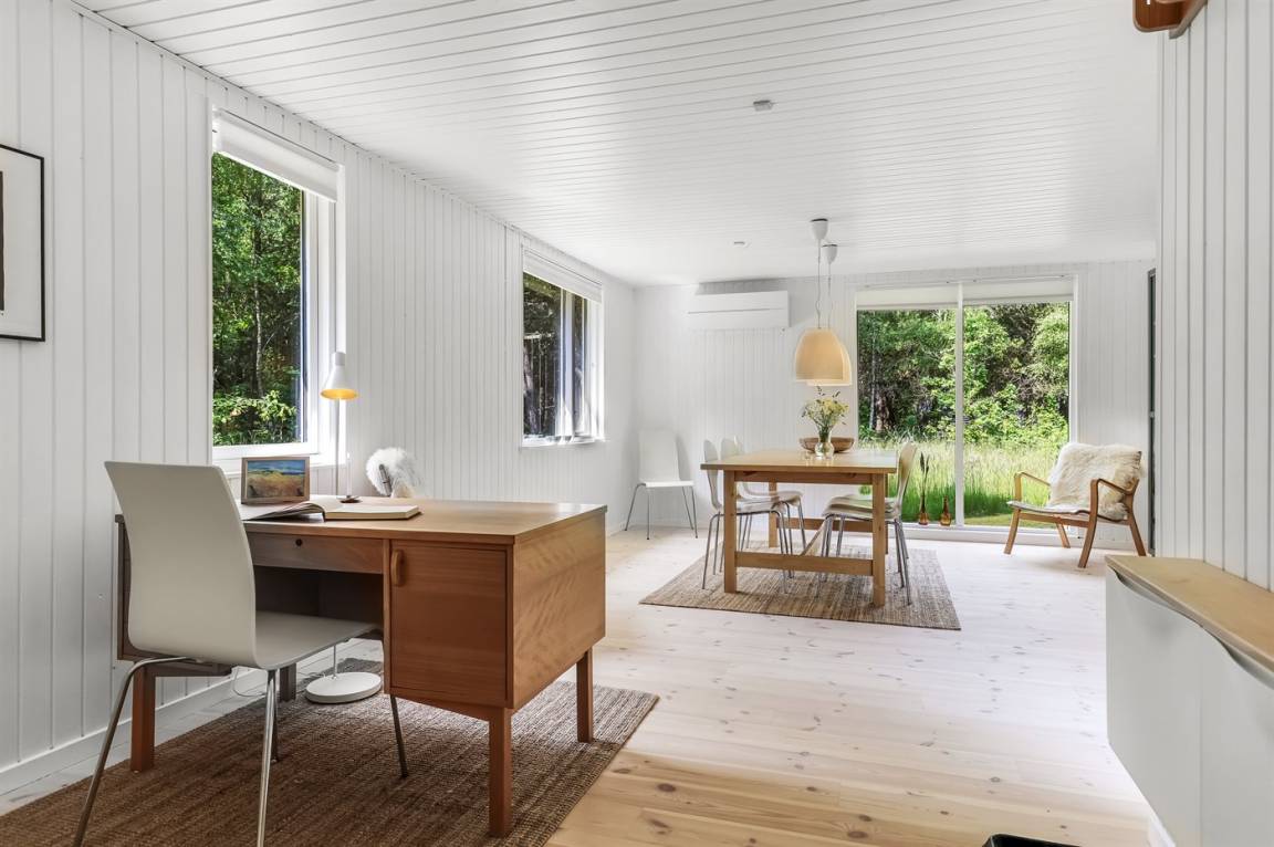 Vom herrlich hellen Wohnzimmer mit Chaiselongsofa und Kamin und vom schönen Esszimmer kann man die Aussicht genießen. Alle drei Schlafzimmer sind mit Doppelbetten ausgestattet. Das Herzstück des Hauses ist der schöne, geschlossene Garten mit überdachter Terrasse, wo man so gut wie immer ein sonniges und ruhiges Plätzchen findet. Hier können Sie auch an Frühlings- und Herbsttagen draußen sitzen, grillen oder lesen. Richtung Westen gibt es eine weitere Terrasse.