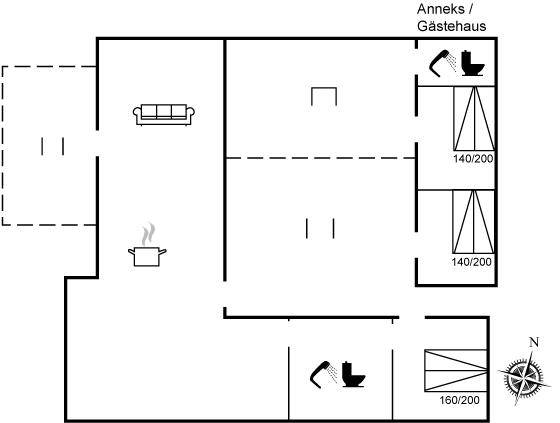 SchlafverhältnisseDie Schlafplätze verteilen sich auf 3 Schlafräume. 6 Schlafplätze in Doppelbetten. 4 von diesen Schlafplätzen befinden sich im Gästehaus - auf 2 Schlafzimmer verteilt. Ferner steht ein Kinderbett zur Verfügung.