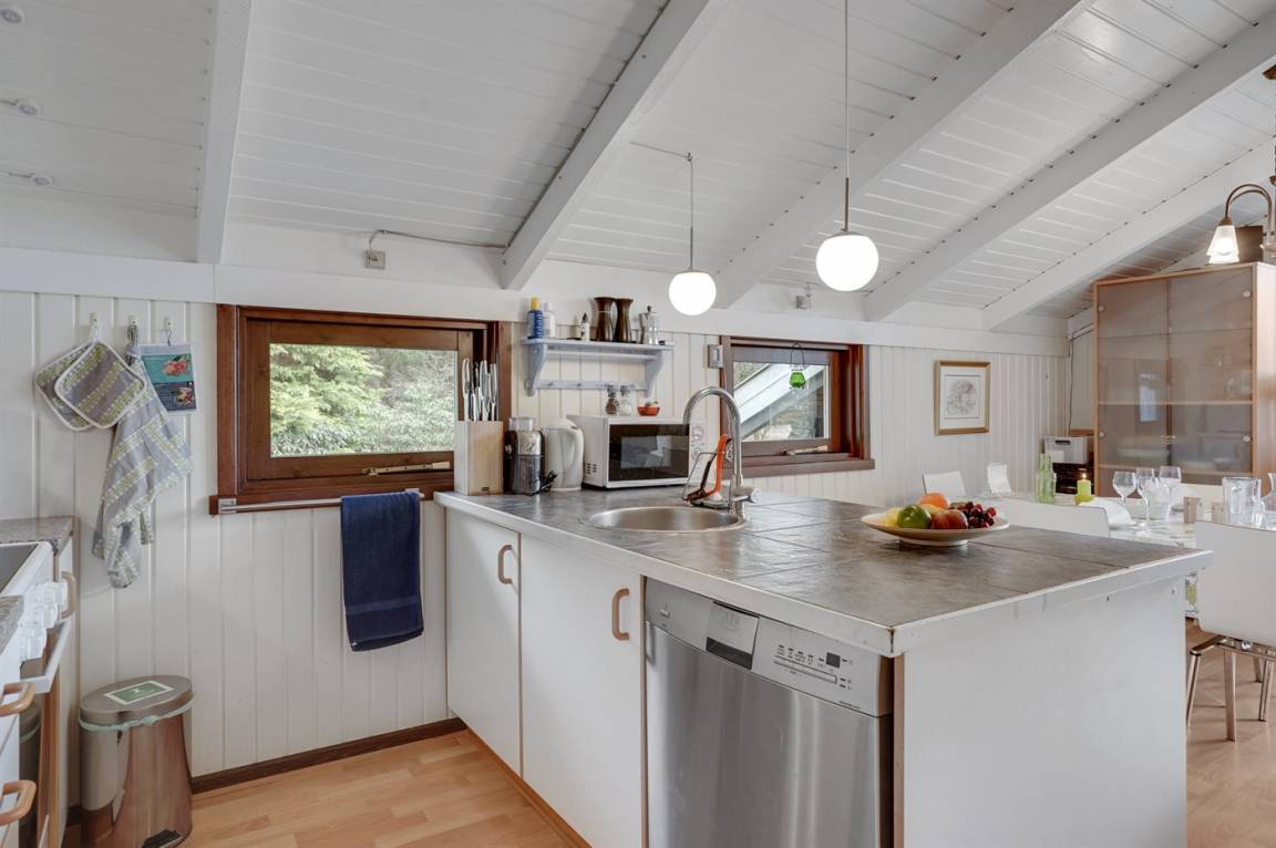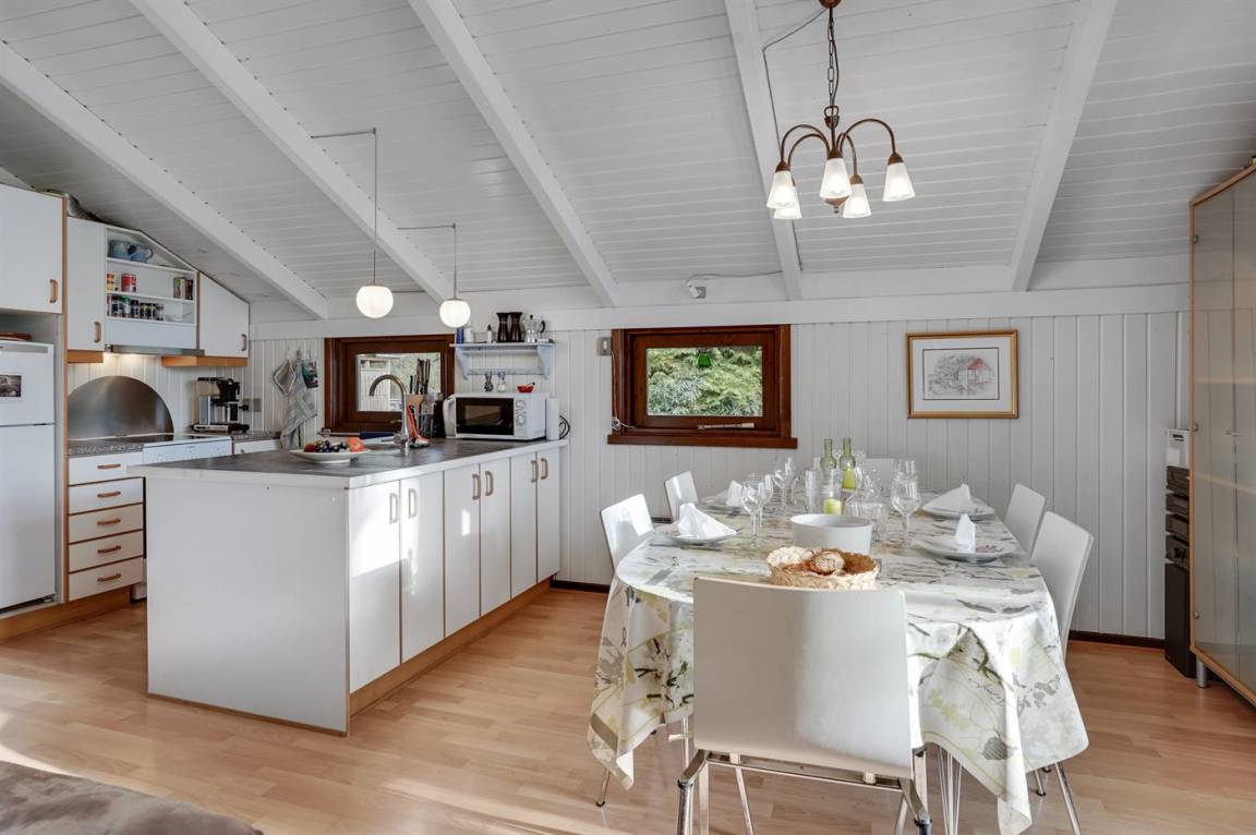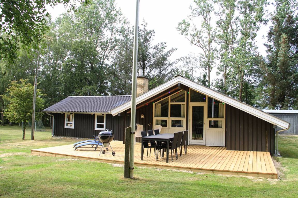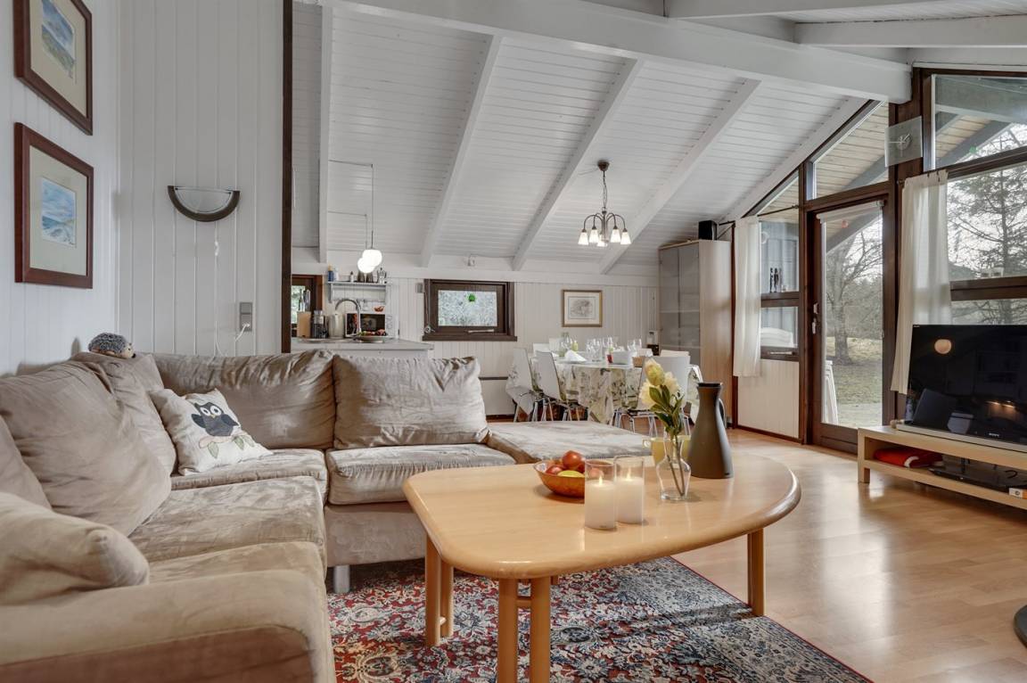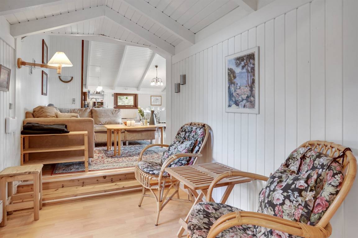 Schönes und großes Ferienhaus aus Holz, 1984 gebaut und 1993 angebaut, auf einem gepflegten Naturgrundstück gelegen. Zum Haus gehört sowohl offenes als auch überdachtes Terrassenareal mit diversen Gartenmöbeln. Parkettböden in den Wohnzimmern, in der Küche, im Flur sowie in einem der Zimmer. Teppichböden in den übrigen Zimmern. Badezimmer mit Duschnische, Waschmaschine und Wäschetrockner. Funktionelle Küche mit u. a. Geschirrspüler, Mikrowelle, Tiefkühlgerät, Umluftofen und Herd mit Ceran-Feld. 2 Wohnzimmer; das eine mit Kaminofen, TV, DVD-Spieler sowie Stereoanlage mit CD-Spieler und das andere mit TV. Kostenlose, kabellose Internetverbindung vorhanden (Computer ist mitzubringen). Die Schlafplätze verteilen sich auf 3 gute Schlafzimmer, alle mit Doppelbett. Für die jüngsten Feriengäste stehen Kinderbett und Kinderhochstuhl sowie Schaukel, Spielhaus und 2 Fußballtore zur Verfügung.