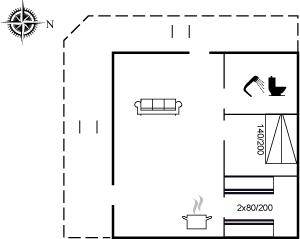 SchlafverhältnisseDie Schlafplätze verteilen sich auf 2 Schlafräume. 2 Schlafplätze in einem Doppelbett. 4 Schlafplätze in Etagenbetten.