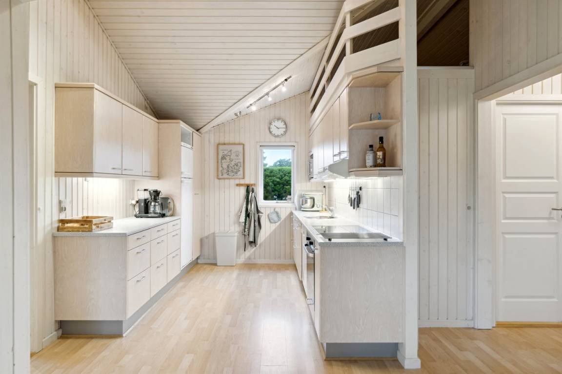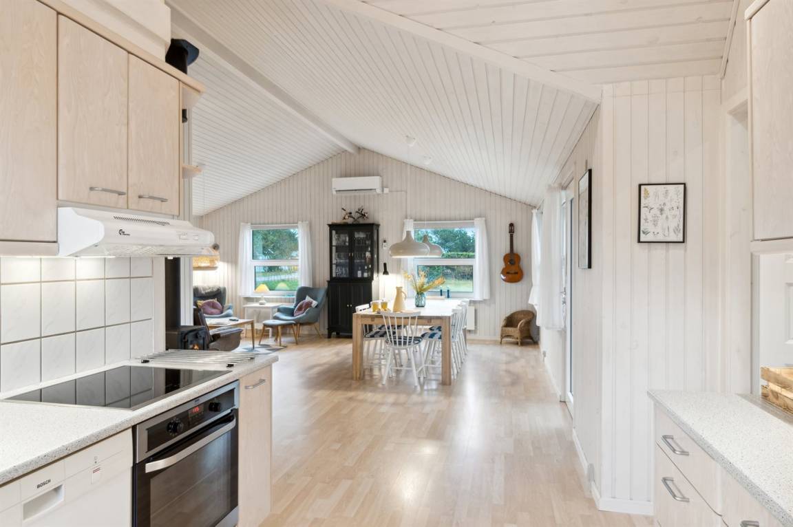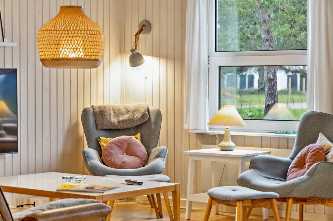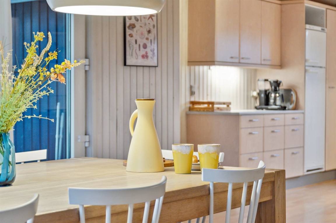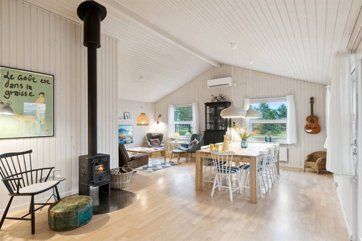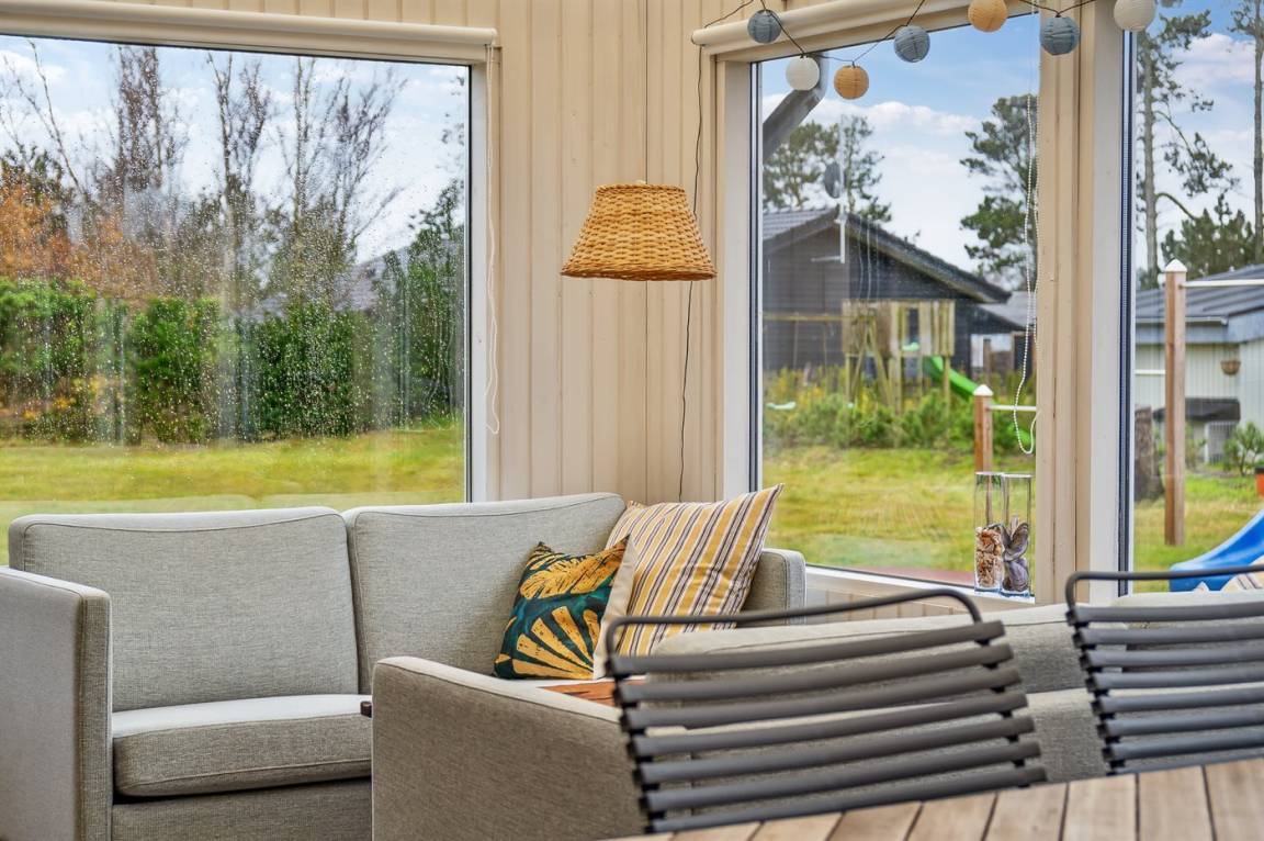 Im Inneren präsentiert sich das Haus hell und modern mit einer guten Raumaufteilung, die gut zu einer Familie mit Kindern passt. Oder du kannst die Großeltern mit in den Urlaub nehmen - die Möglichkeiten sind vielfältig in diesem schönen Ferienhaus, das den Rahmen für einen guten und entspannten Urlaub bildet. Vom hellen Wohnzimmer aus kann man direkt auf die schöne Terrasse treten und die herrliche Natur in hohem Maße spüren. Hier besteht die Möglichkeit, eine gemütliche Ecke zu finden und die Sonne zu genießen.