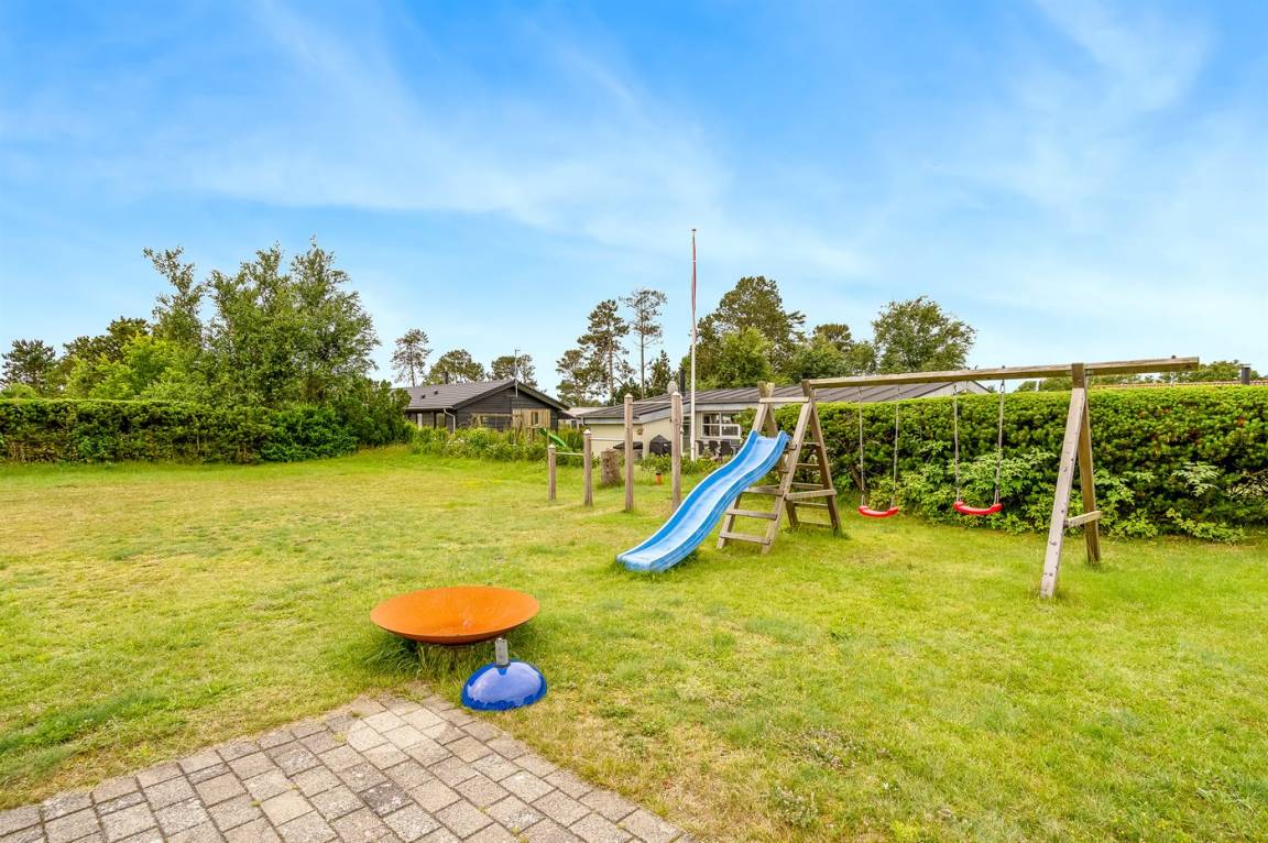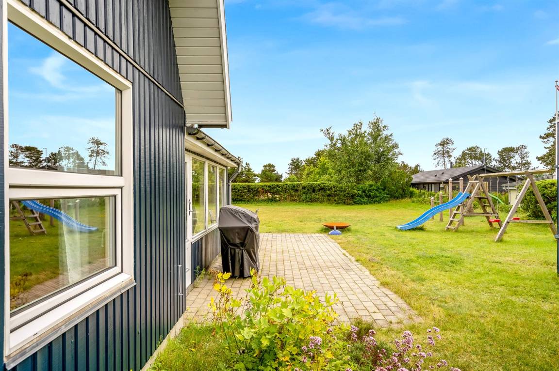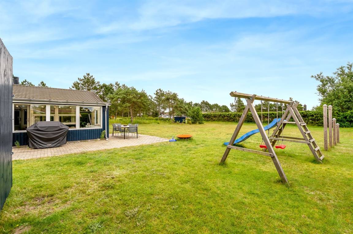 Das Ferienhaus befindet sich auf einem großen Naturgrundstück, auf dem es viel Platz zum Spielen für Kinder jeden Alters gibt. Hier herrscht wirklich Frieden und Ruhe, sodass man sich entspannen und den Urlaub genießen kann. Vom Ferienhaus sind es nur etwa 200 Meter zum Meer, wo der feine Strand zu gemütlichen Stunden mit der Familie einlädt.