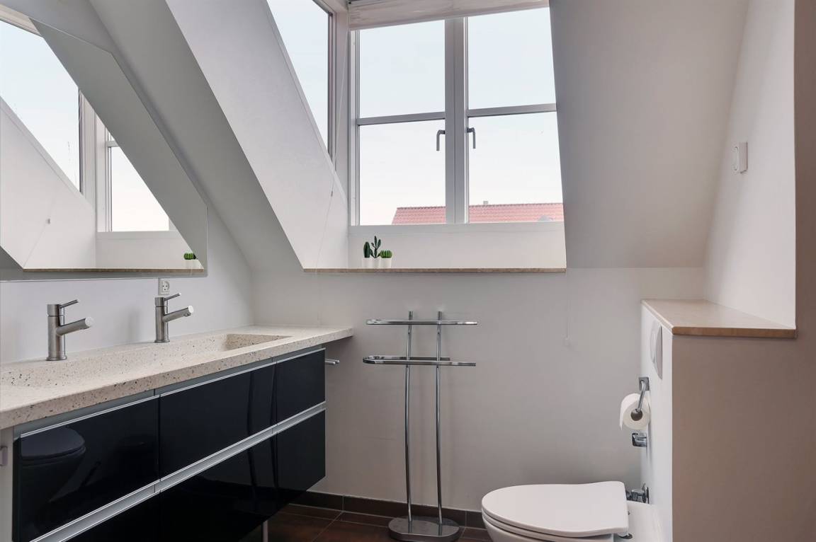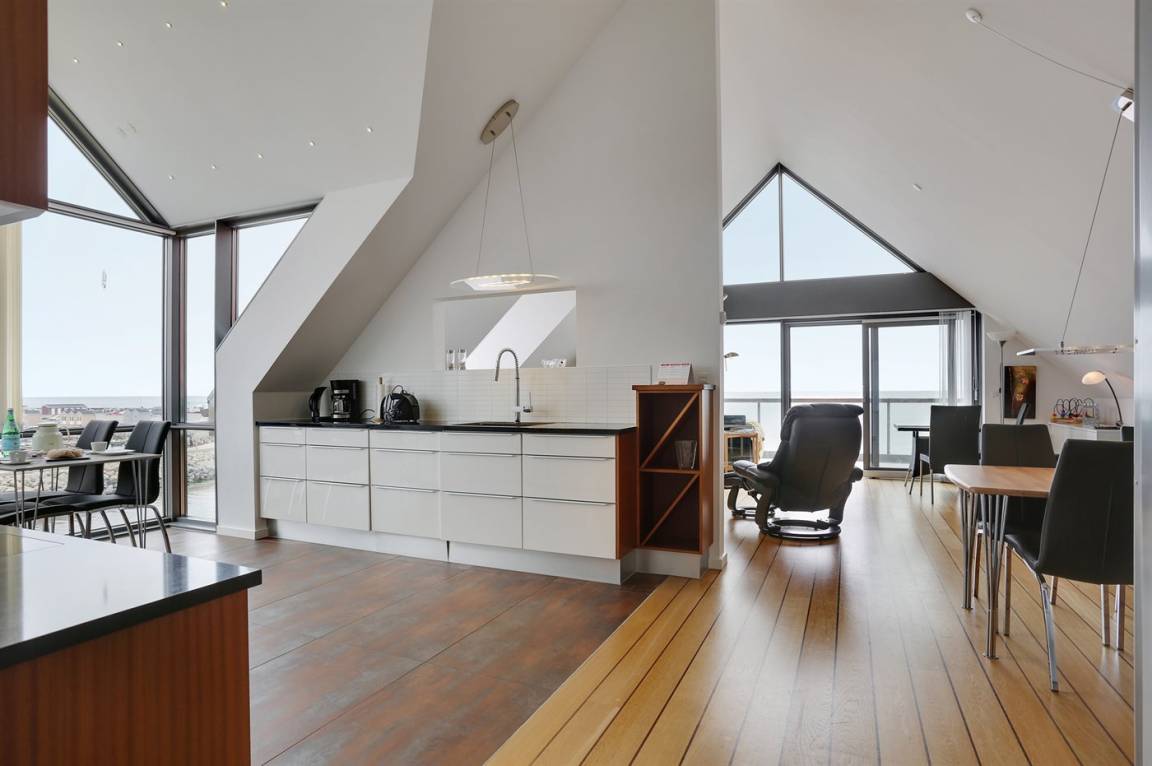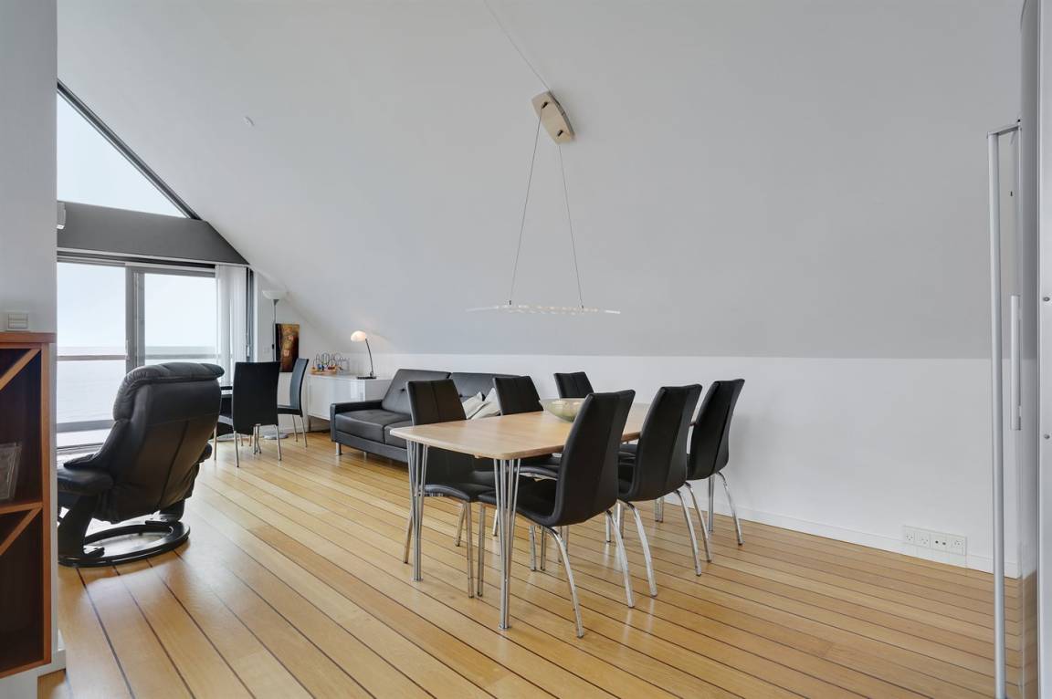Penthousewohnung mit Panoramablick auf das Kattegat und den Hafen von Sæby. Hier genießen Sie Ihren Morgenkaffee bei einem der schönsten ungestörten Sonnenaufgänge, die Vendsyssel zu bieten hat. Zur Wohnung gehören zwei Privatparkplätze. Die Wohnung liegt wortwörtlich nur einen Steinwurf vom Wasser entfernt und in wenigen Gehminuten erreichen Sie das Zentrum und den Hafen von Sæby, wo Sie eine Vielzahl an Geschäften, Restaurants und Cafés finden. Am Hafen gibt es gute Möglichkeiten zum Angeln. Im zur Wohnung gehörenden Geräteraum steht ein Fischreinigungstisch zur Verfügung. In ca. 10 Autominuten erreichen Sie Frederikshavn, wo es einen Palmenstrand, ein Kino und den Indoor-Spielpark FunHouse gibt. Unterhaltung für Jung und Alt garantiert!