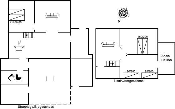 SchlafverhältnisseDie Schlafplätze verteilen sich auf 3 Schlafräume. 2 Schlafplätze in einem Doppelbett. 4 Schlafplätze in Einzelbetten. Ferner steht ein Kinderbett zur Verfügung.