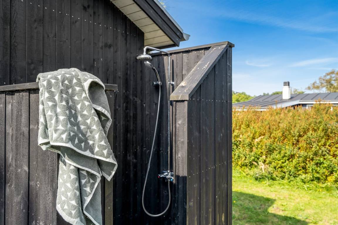 Ein Ferienhaus mit Ladestecker für dein Elektroauto, Außendusche und Fischreinigungsplatz.