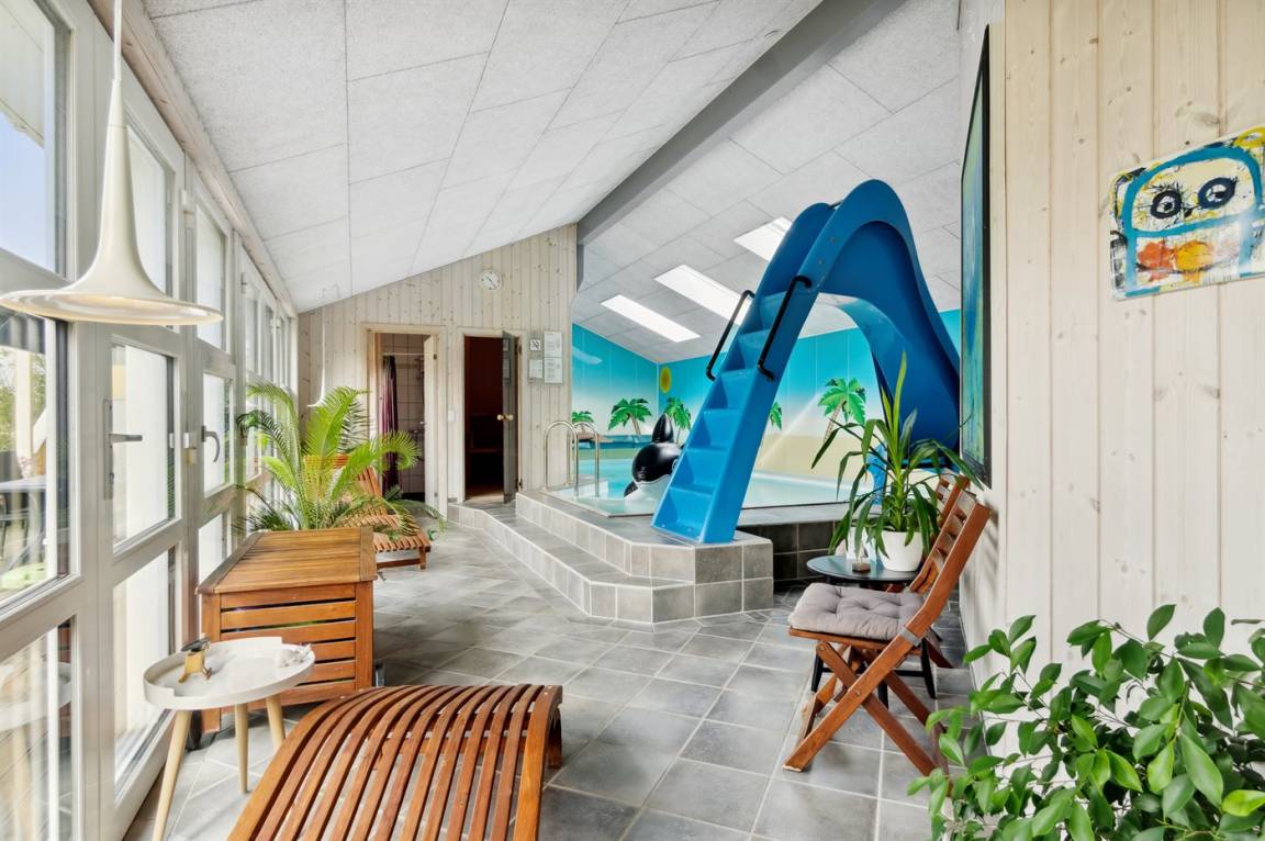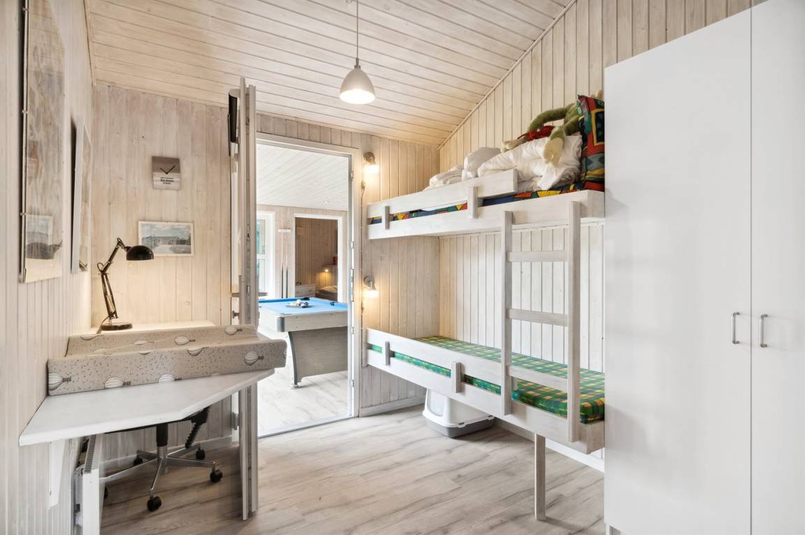 Dieses absolut fantastische und gepflegte Ferienhaus mit großem Swimmingpool und Aktivitätsraum befindet sich auf einem schönen, ungestörten Grundstück in der ruhigen und malerischen Gegend von Lyngså Strand, nur etwa 8 Kilometer südlich von Sæby. Das Ferienhaus ist hell, modern und mit einer optimalen Aufteilung für zum Beispiel zwei Familien, die ihren Urlaub in diesem wunderschönen Ferienhaus verbringen möchten.