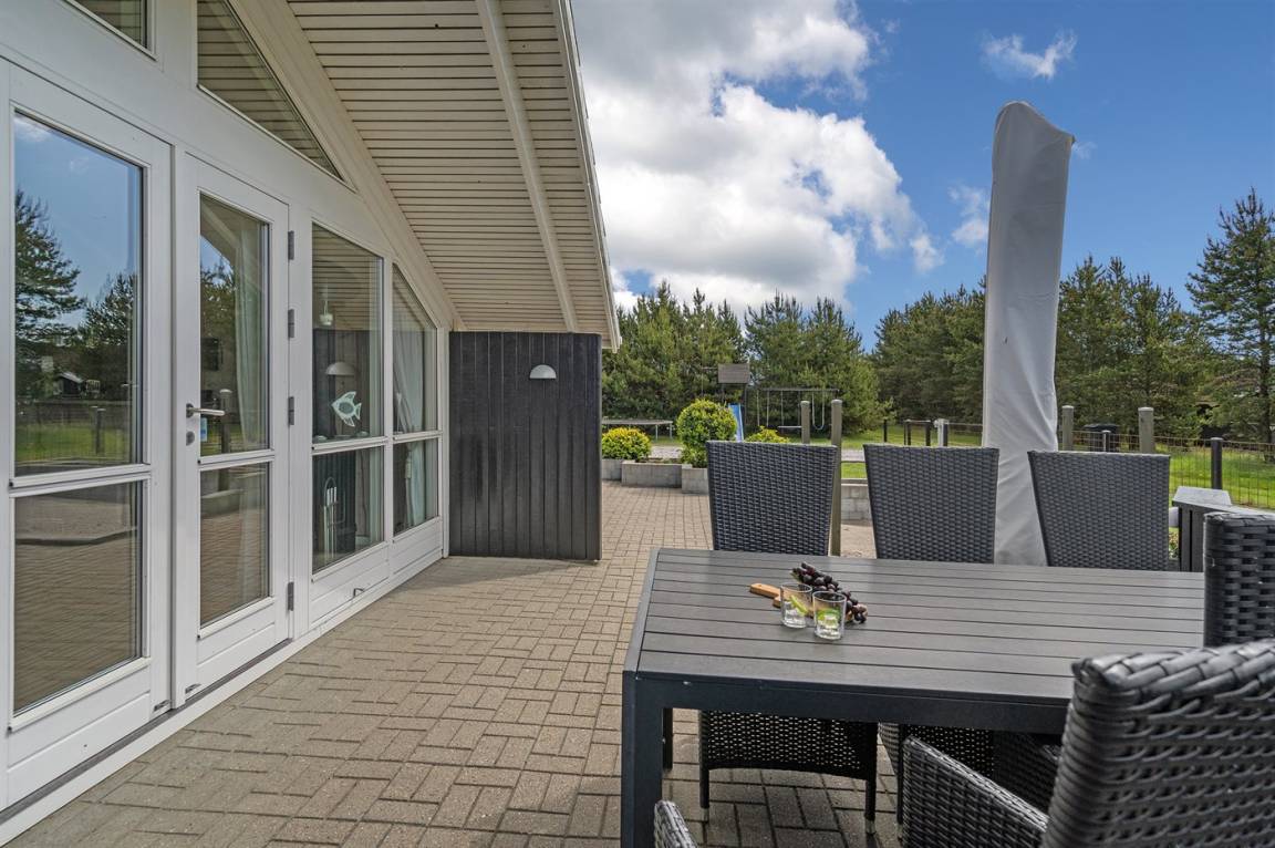 DraußenDie Ferienunterkunft liegt auf einem 1200 m² großen Gartengrundstück. Das Grundstück ist eingezäunt. Die Entfernung zum Meer beträgt 400 m. Die nächste Einkaufsmöglichkeit liegt 8000 m entfernt. Es steht ein 70 m² Terrassenareal zur Verfügung. Außerdem gibt es 10 m² überdachte Terrasse. Geräteraum. Schaukel. Es steht ein Grill zur Verfügung. Parkplatz auf dem Grundstück.