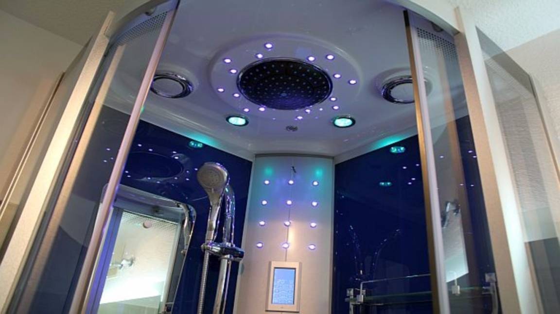 Verwöhnen Sie sich selbst in der Dampfdusche mit einer Lichttherapie, Massagedüsen für Körper und Füsse, Regendusche und vielen weiteren Funktionen. Auch ein Radio ist integriert.