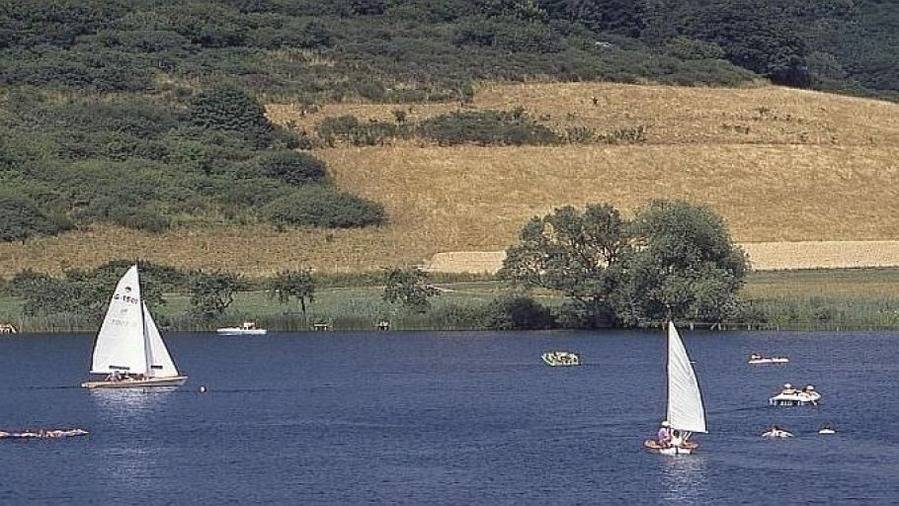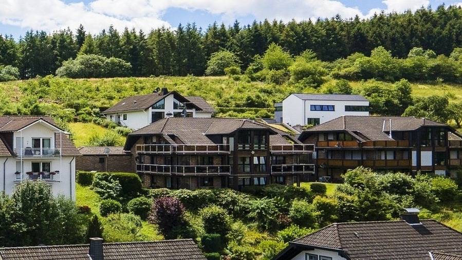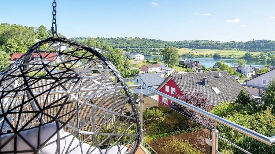 Diese Ferienwohnung liegt wundervoll am Hang in Schalkenmehren am See. Es bietet sich vom Wohnraum, vom Esszimmer und vom Balkon ein herrlicher Blick auf den See und den Ort.