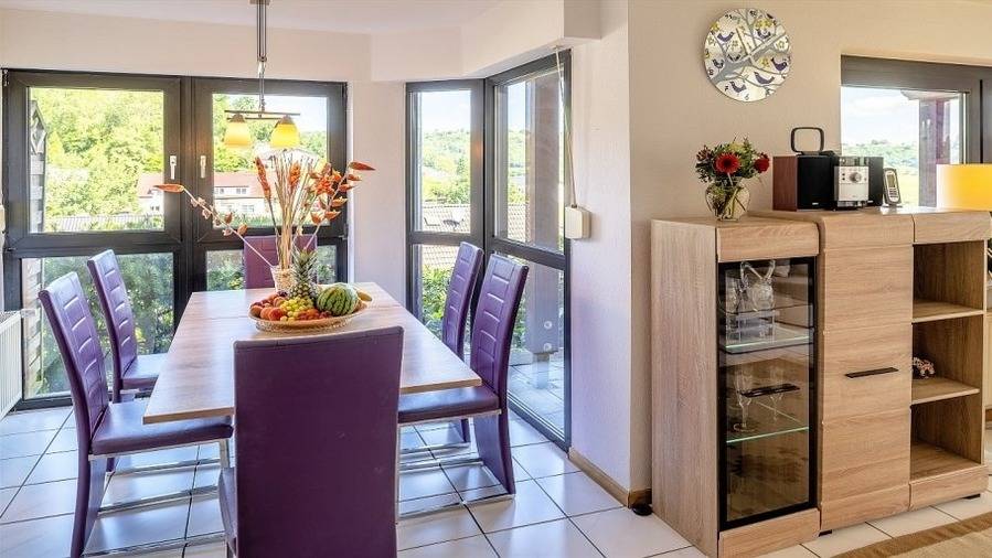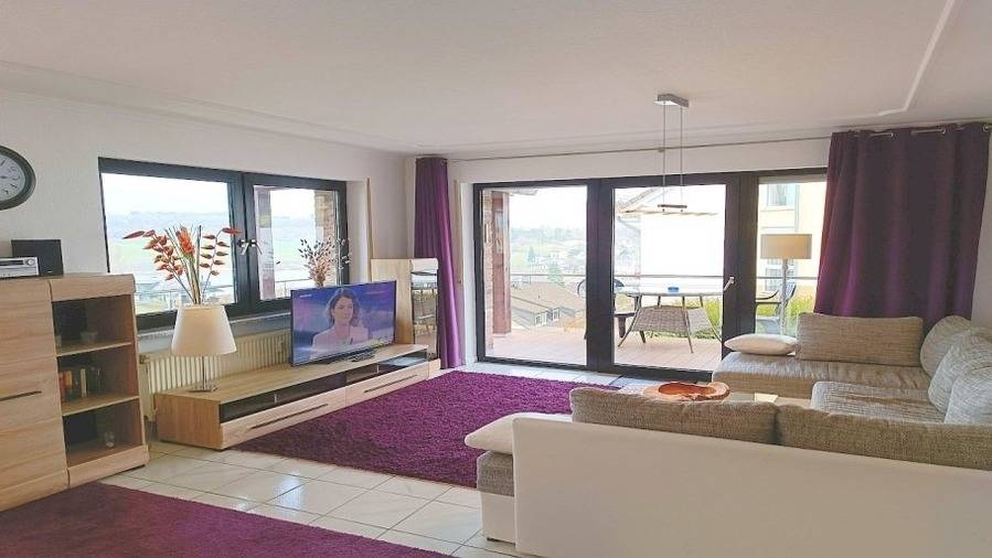 Der große Panoramabalkon verläuft mit 3 Ausgängen (vom Wohnraum, der Essecke und aus einem Schlafzimmer) komplett um die Wohnung in 2 Himmelsrichtungen. Dort können Sie den Panoramablick genießen. Bis zum See und dem Ortskern sind es nur wenige Gehminuten.